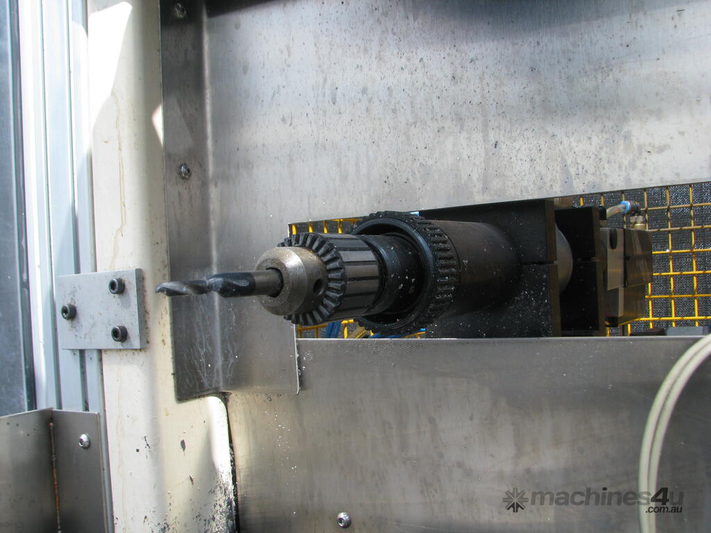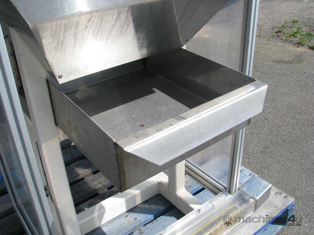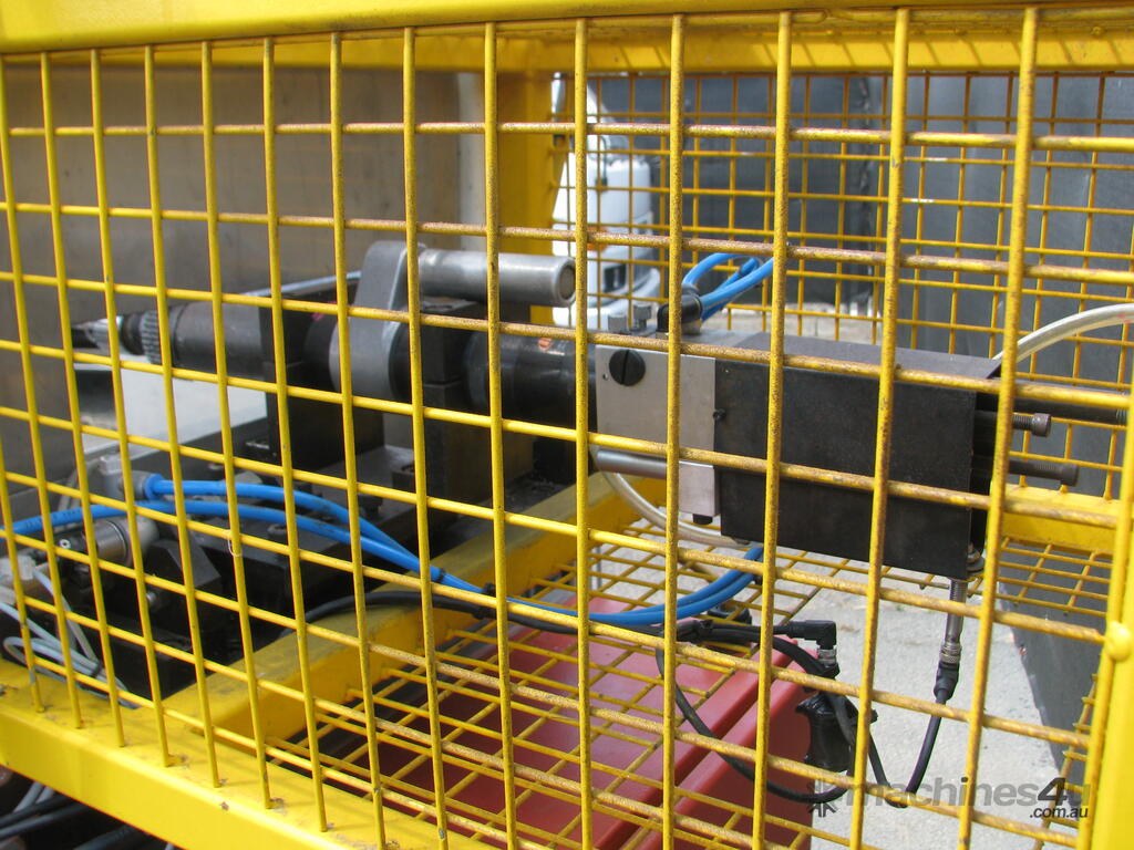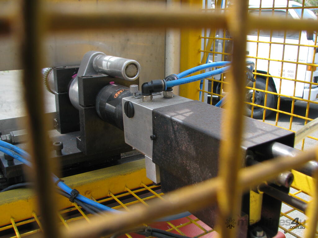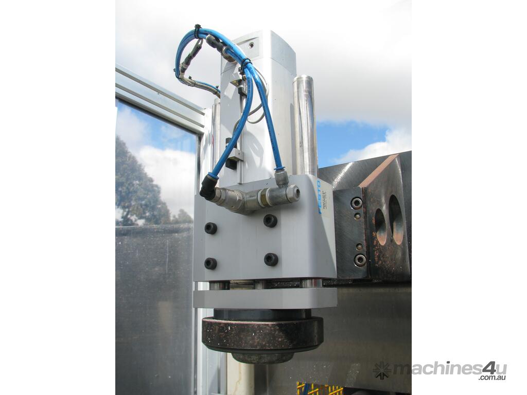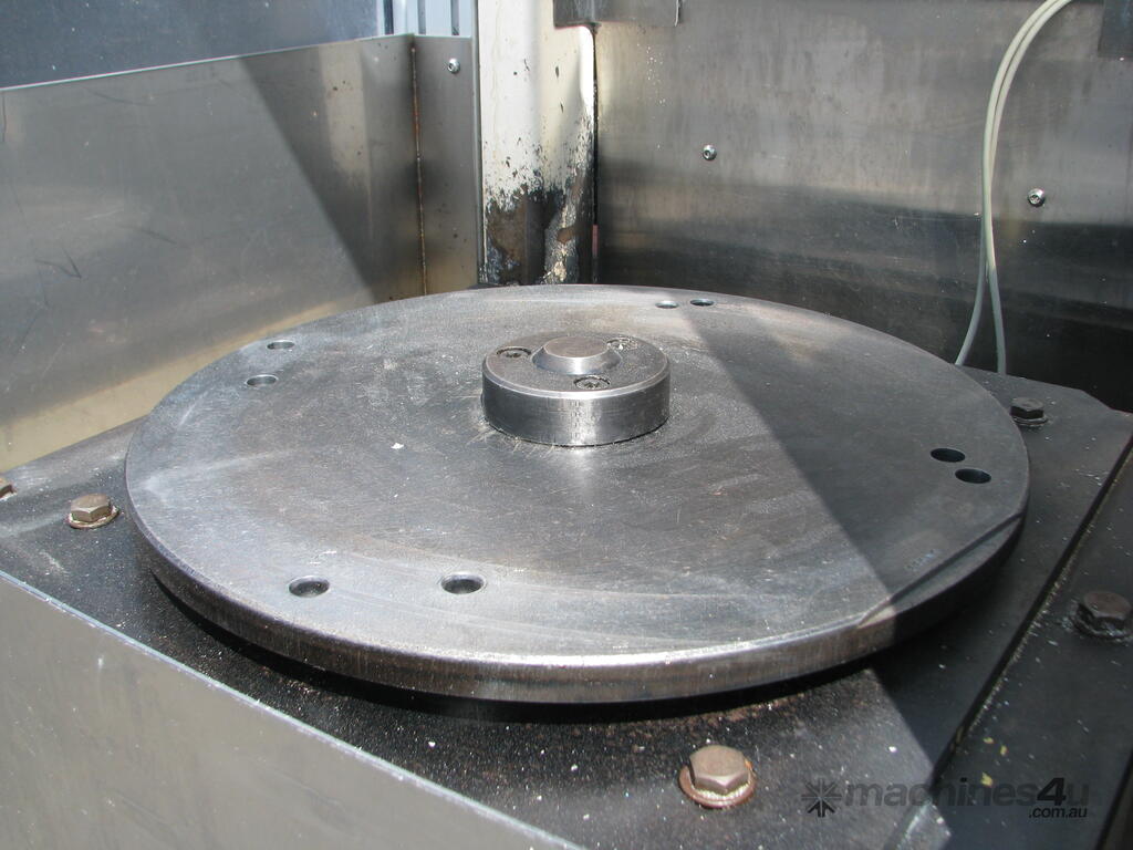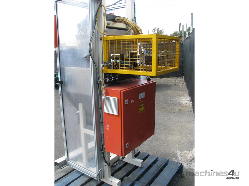Has a rotary indexing table, an Allen-Bradley PLC and a couple of Leuze safety curtains built on.