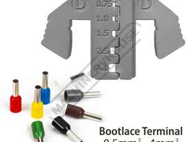 - Jaw D – Suitable for bootlace terminals. Sizes: 0.5mm² 0.75mm² 1.0mm² 1.5mm² 2.5mm² & 4.0mm²