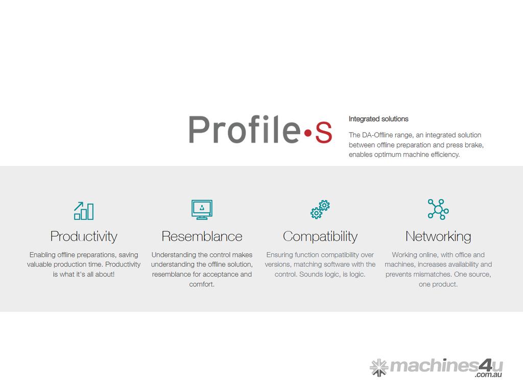 DA-Offline software maximizes machine efficiency and production output of press brakes. The Profile-S software facilitates offline programming and simulation the bending process. Production preparation, feasibility studies and tooling verification can be carried out offline.