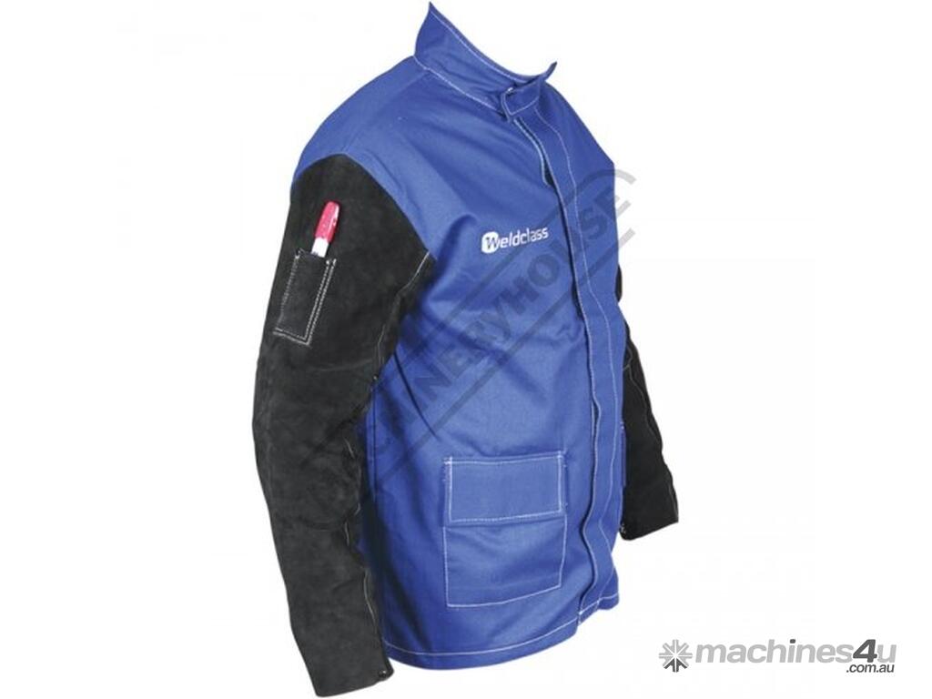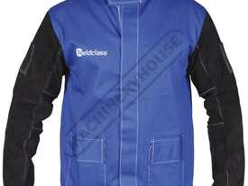 WELDCLASS Promax Blue FR Welding Jacket WC-04655 Size: XL - Extra Large Lighter & Cooler than Full Leather, with Leather Sleeves