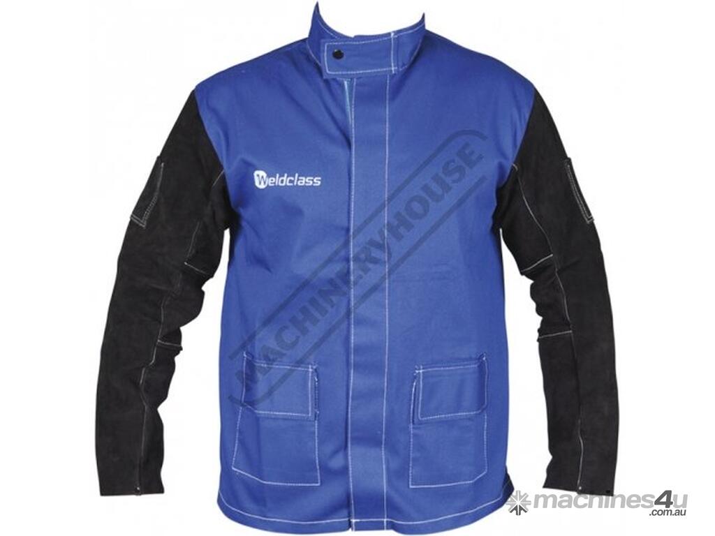 WELDCLASS Promax Blue FR Welding Jacket WC-04656 Size: 2XL - Double Extra Large Lighter & Cooler than Full Leather, with Leather Sleeves