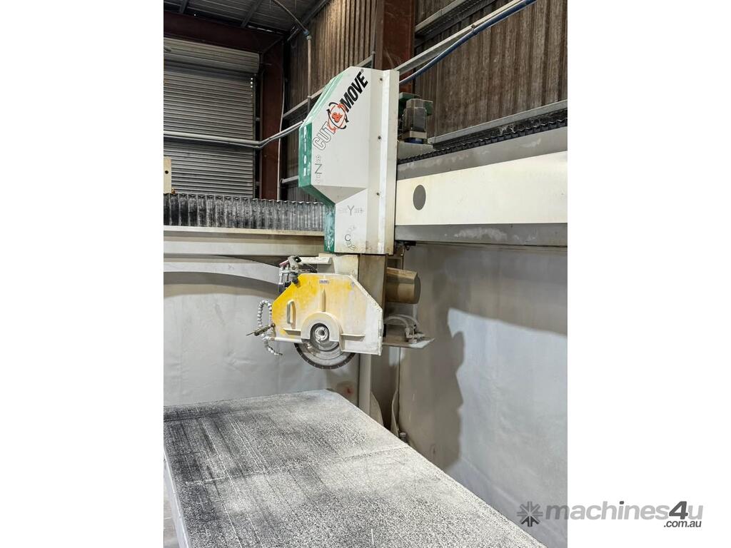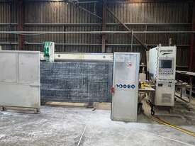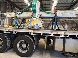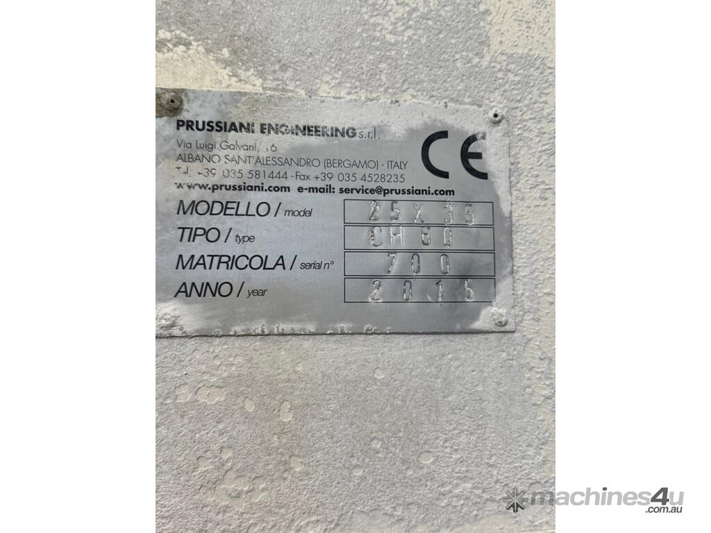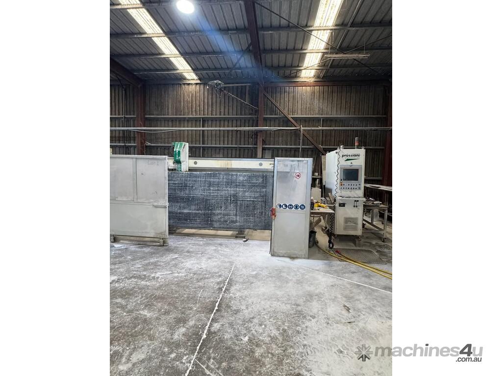 Prussiani Champion 60 bridge saw, 2015. The machine is in very good condition and fully operational. It has been fully dismantled, including all auxiliary and mounted equipment, walls, tilt hydraulic table, safety guarding, camera, as well as all steel wall and table mounting plates.
