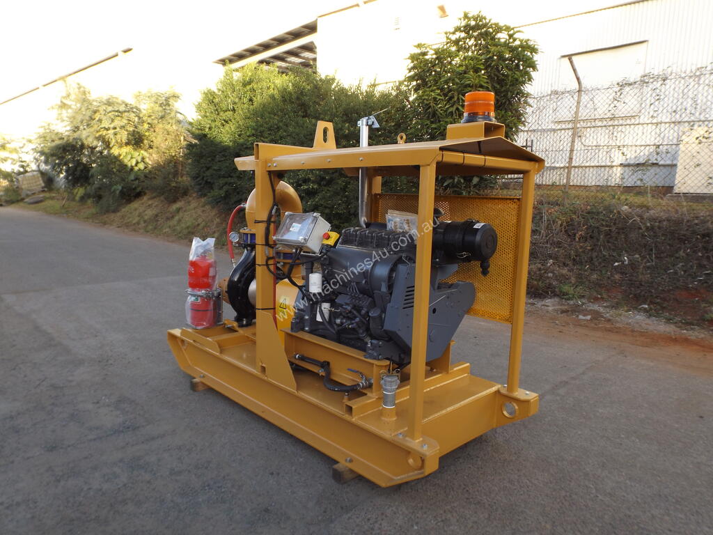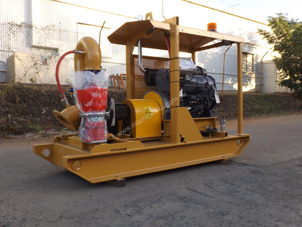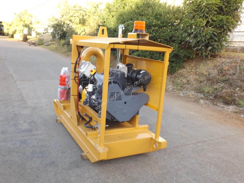MOUNTED ON HEAVY DUTY SKID BASE FRAME WITH IN-BUILT 300LT FUEL TANK WITH CENTRE LIFT AND ROOF COVER. UNIT SUPPLIED WITH BATTERY AND LEADS, SHUTDOWN PANEL AND TAILSHAFT AND ADAPTORS WITH FULL GUARD PROTECTION.