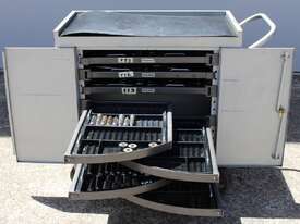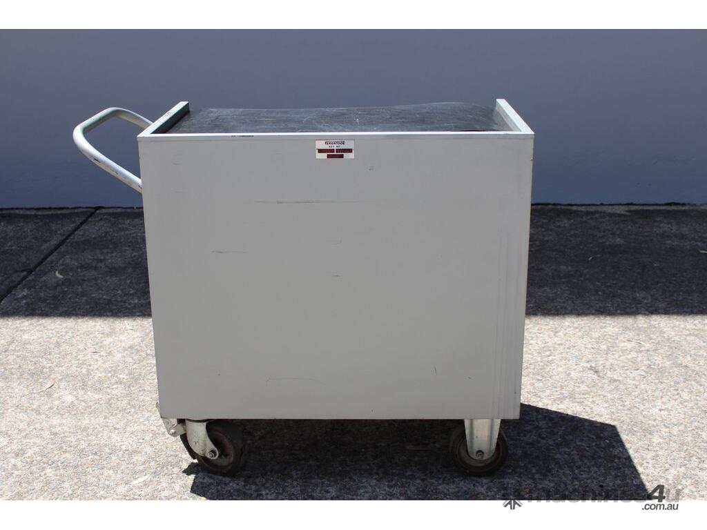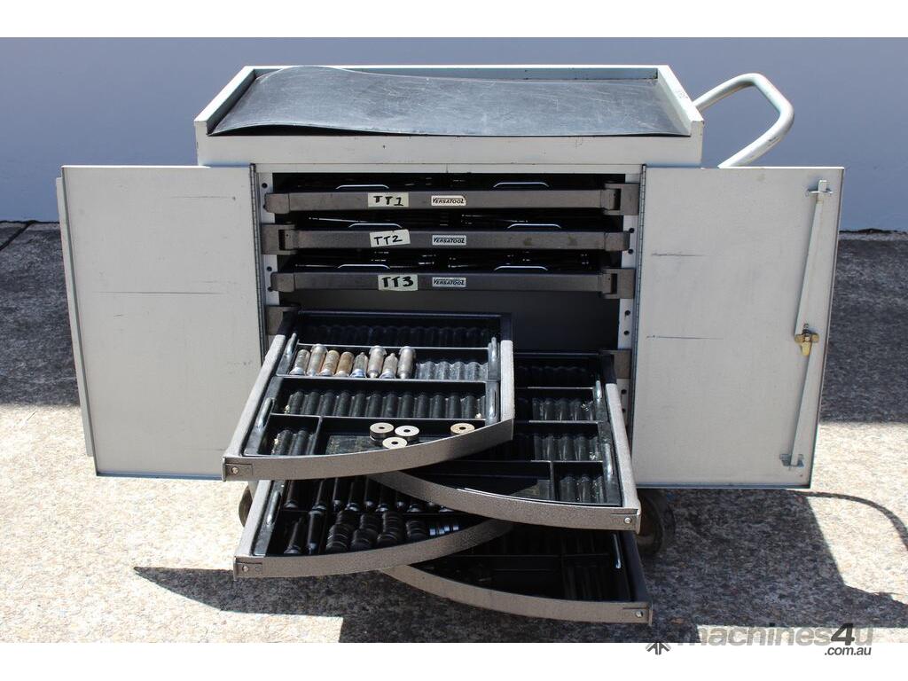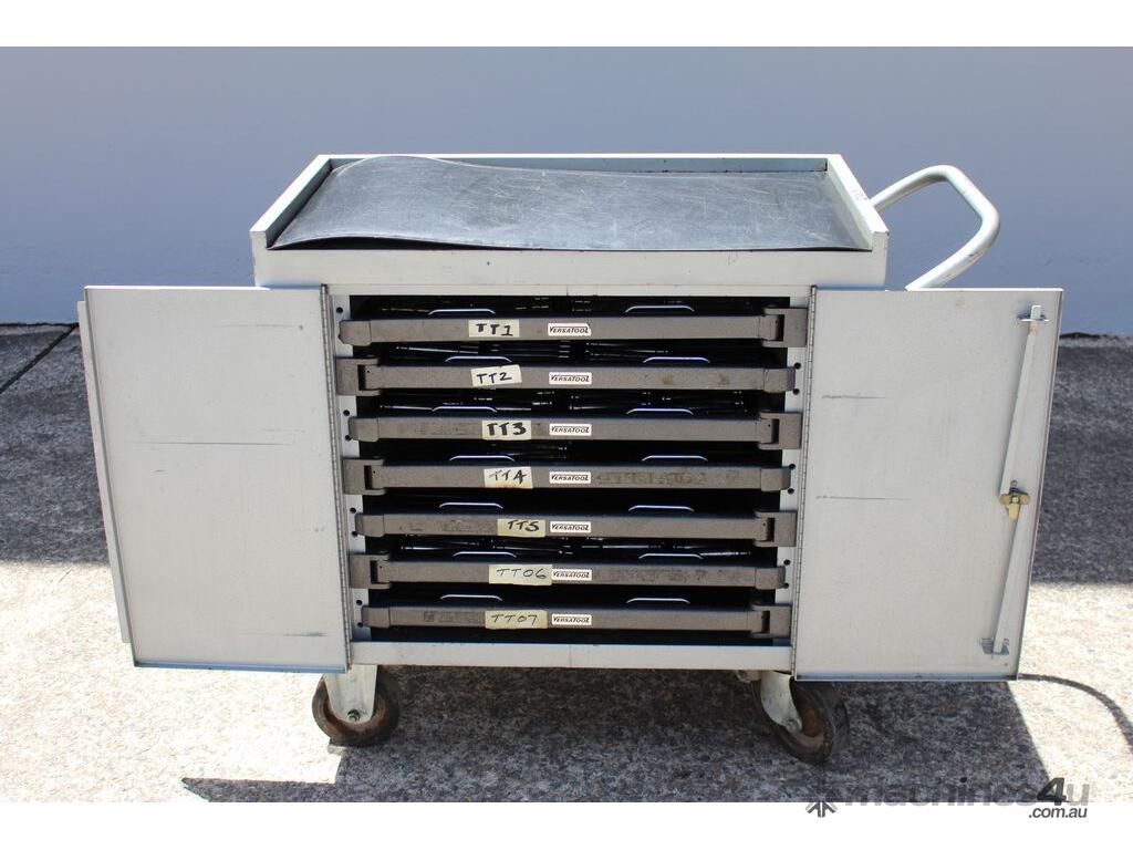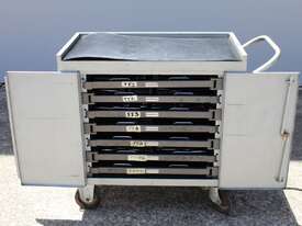 Punch Storage Trolley, "Versatool" model MB3, outer dimensions: 92 cm x 52 cm x 90cm, heavy duty wheels, with 7 hinged trays, No tablet tooling included