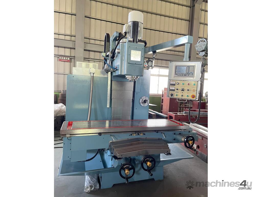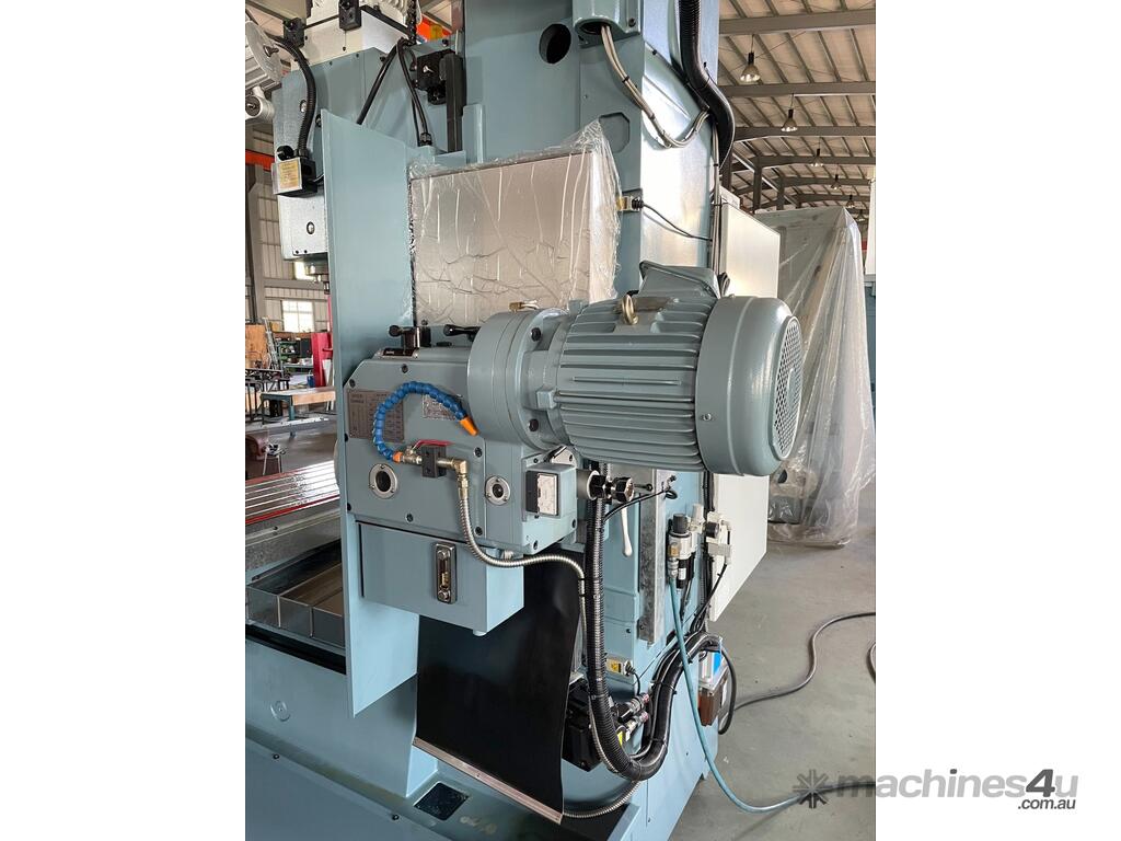 This is driven with gear head drive, servo motor drive on vertical feed and handwheel control.