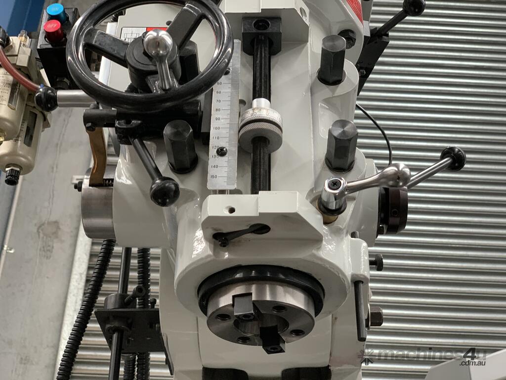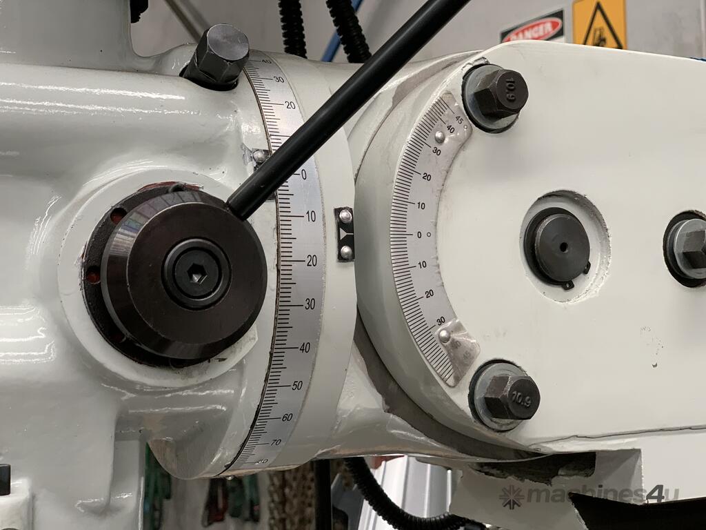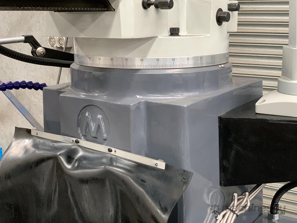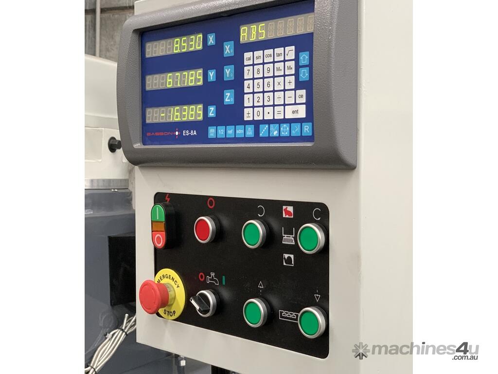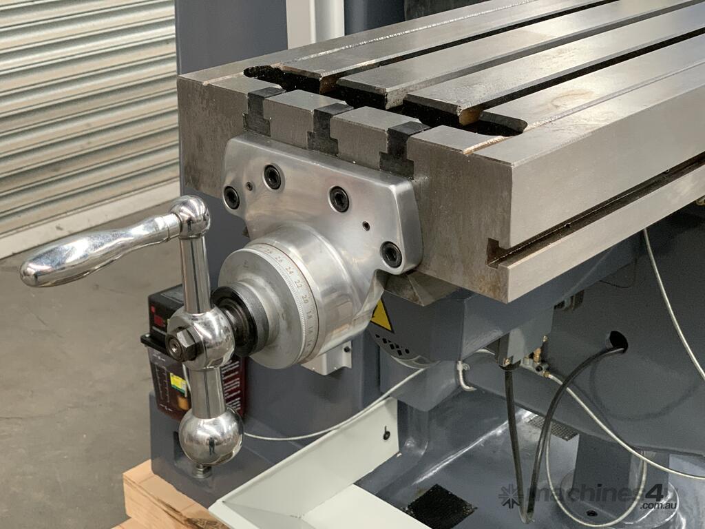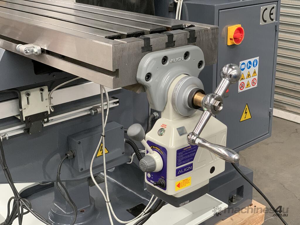 This Mill is made with uncompromising quality Hardened and ground table, chromed quill & Turcite coated ways mean built-in durability for years of service. Check out the capacities, features & specifications below! This is the machine to have for years of accurate, trouble-free operation. Fitted with Easson 3 axis digital read out. two axis table feed, power knee, variable speed head, quill feed all combine to serve you well.