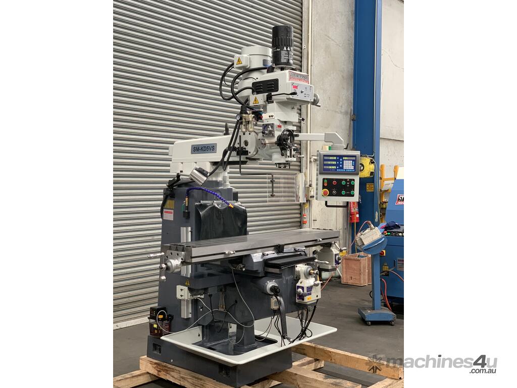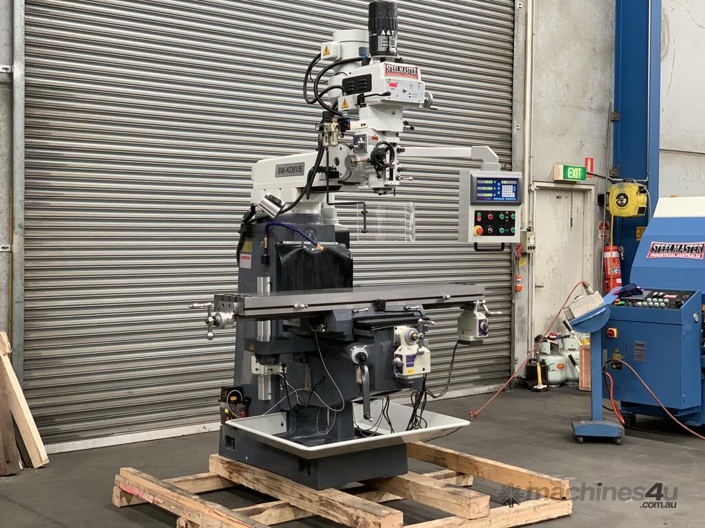 SM-KD4VS. Turret Mill Steelmaster. Pwr Draw Bar, ISO40 Spindle, 2 Axis Power Feed, 3 Axis DRO.