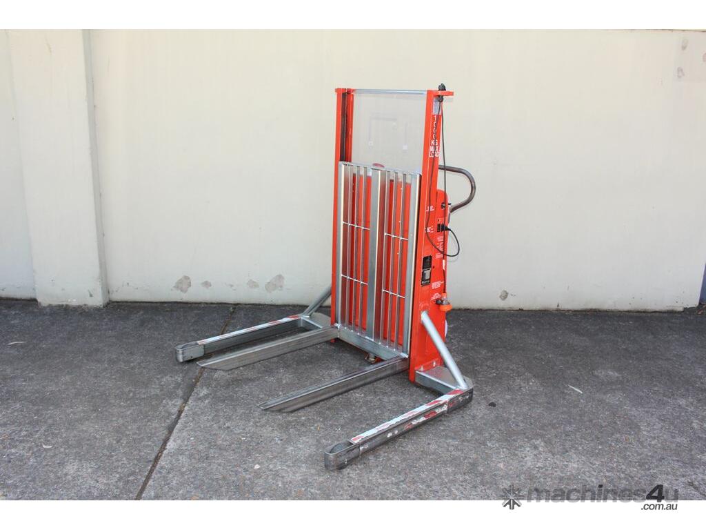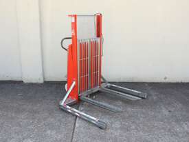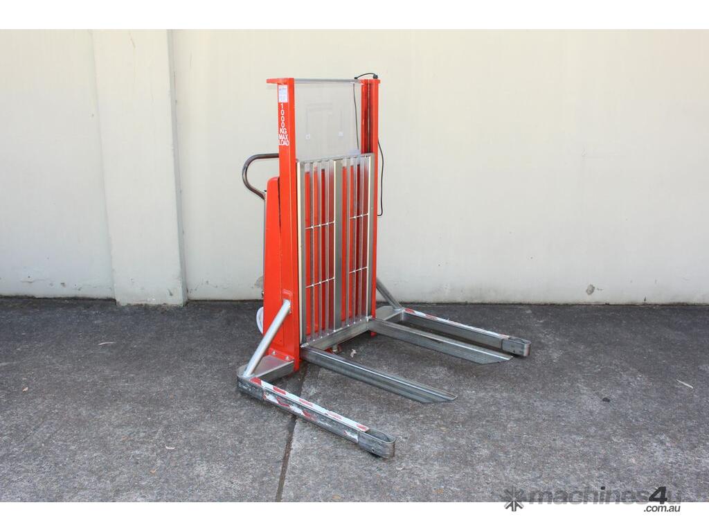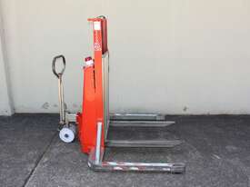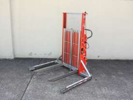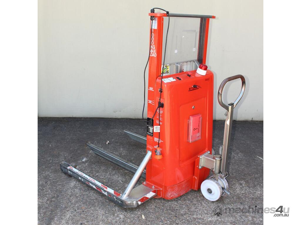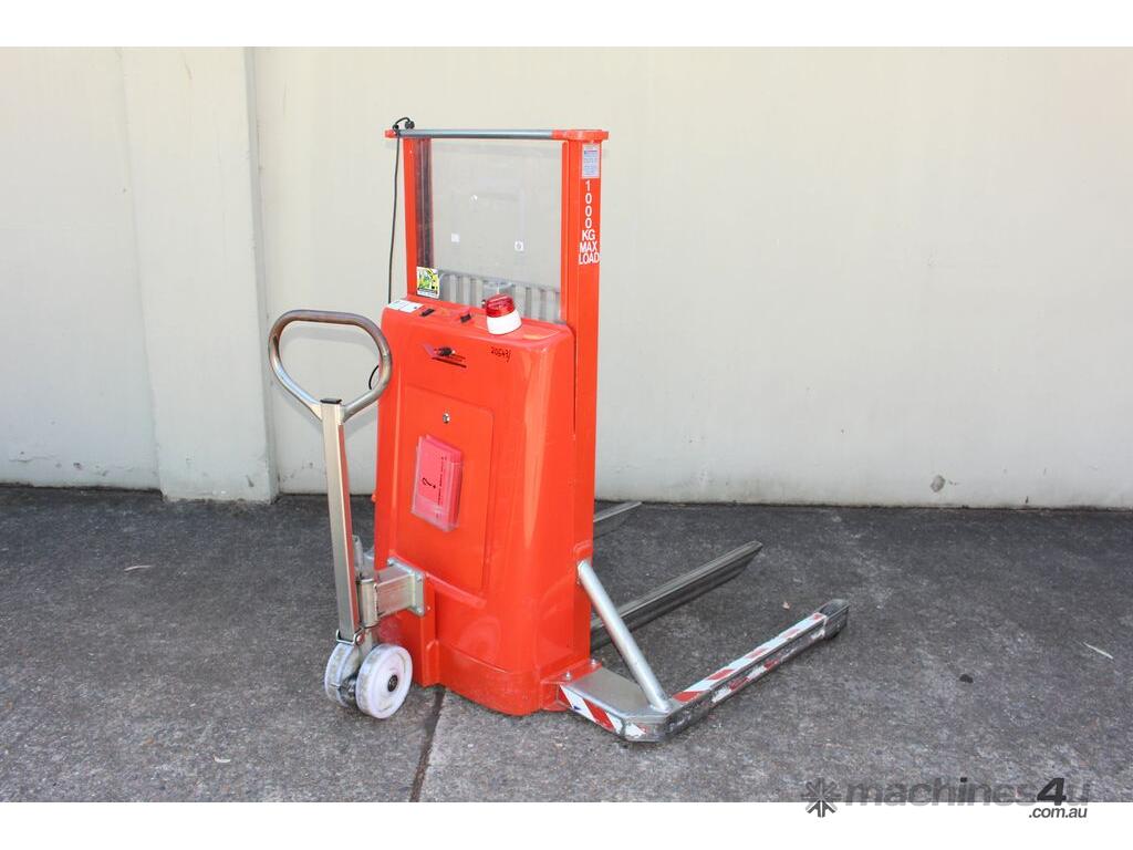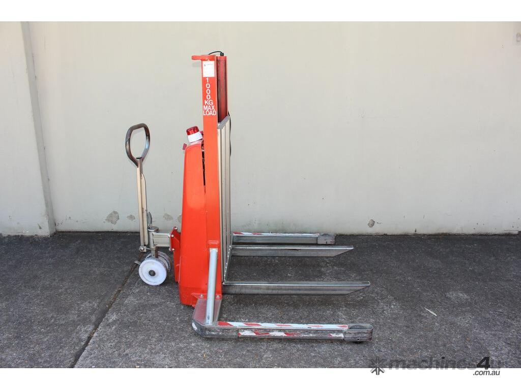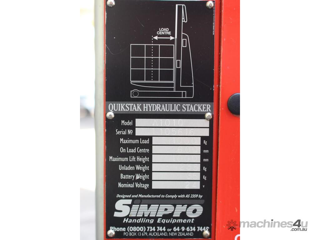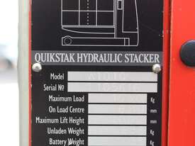 Quikstak Hydraulic Stacker, "Simpro" Model A1010, max. load capacity 1000kgs, max. lifting height 1000mm, battery operated, single phase, manual push