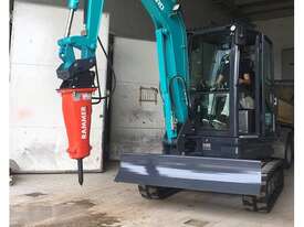 The Rammer 355E is your no fuss solution for carriers between 1.6 and 3.6 tonnes. Protected by their box type housing, these rockbreakers produce less noise and vibration, whilst they are strong enough to take a beating. The Rammer 355E comes with the remote monitoring hardware RD3 installed.
