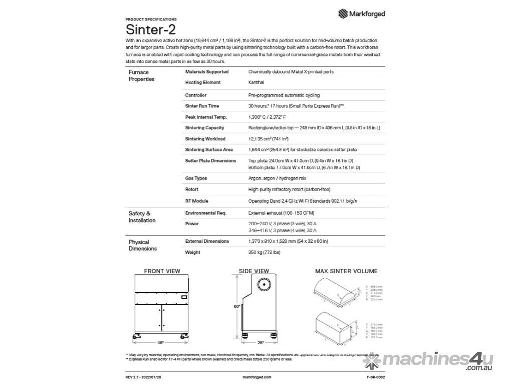 • Markforged Sinter-2 Furnace (Latest Generation)