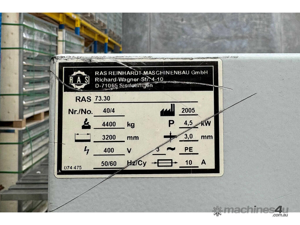 This machine was checked and tested by the Australian RAS agent before commissioning, however due to change of business priorities at the time - the machine was NEVER USED