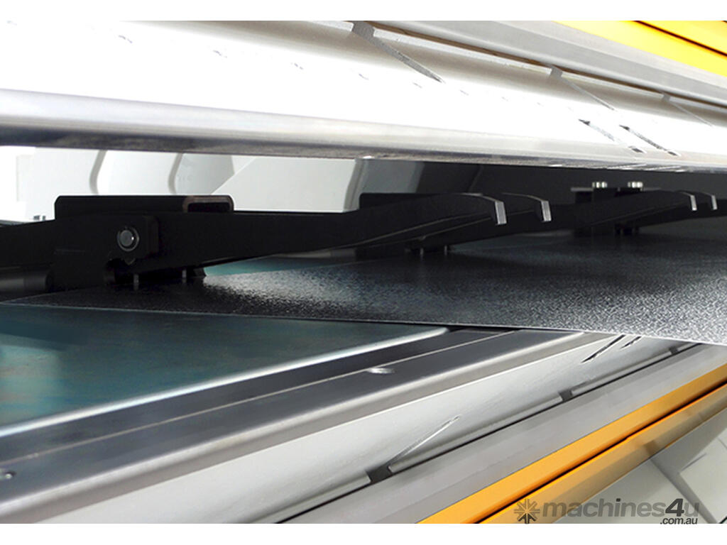 After the blank is inserted and in position, the upper beam closes and clamps the workpiece. The grippers open and automatically re-grip the part at the far end without any involvement of the operator. Finger pockets allow the grippers to come as close as 6 mm to the bend line.