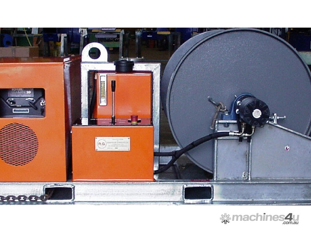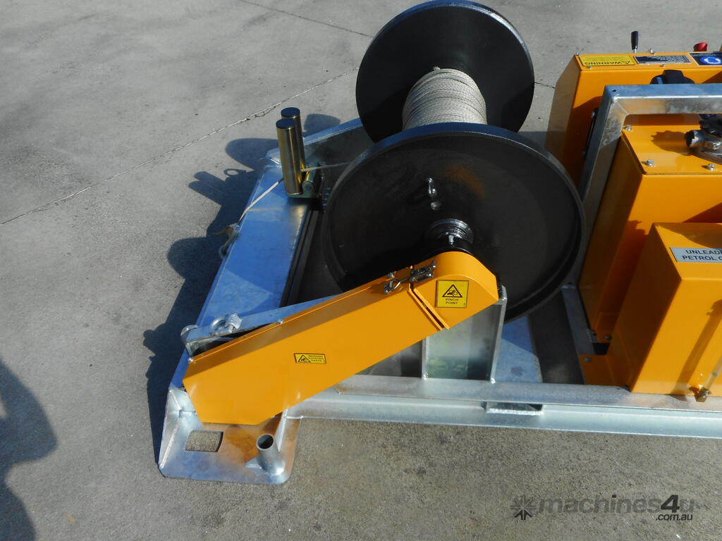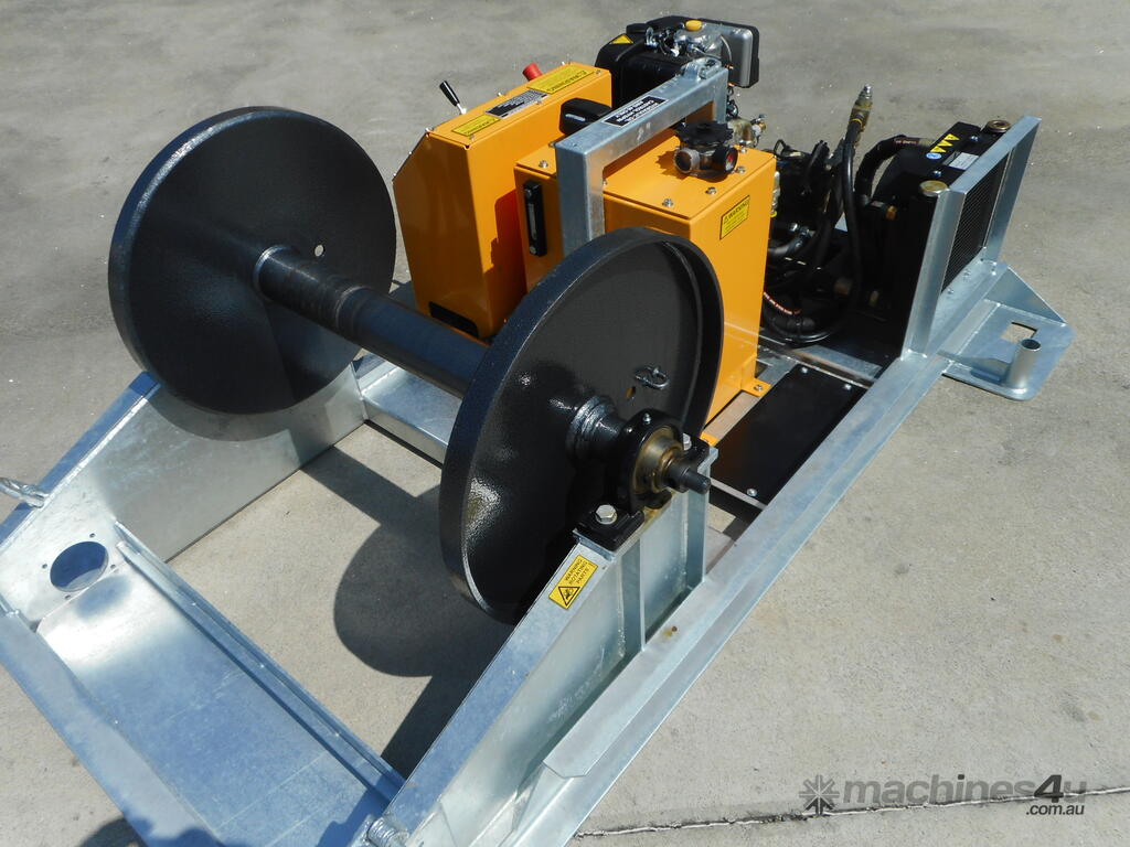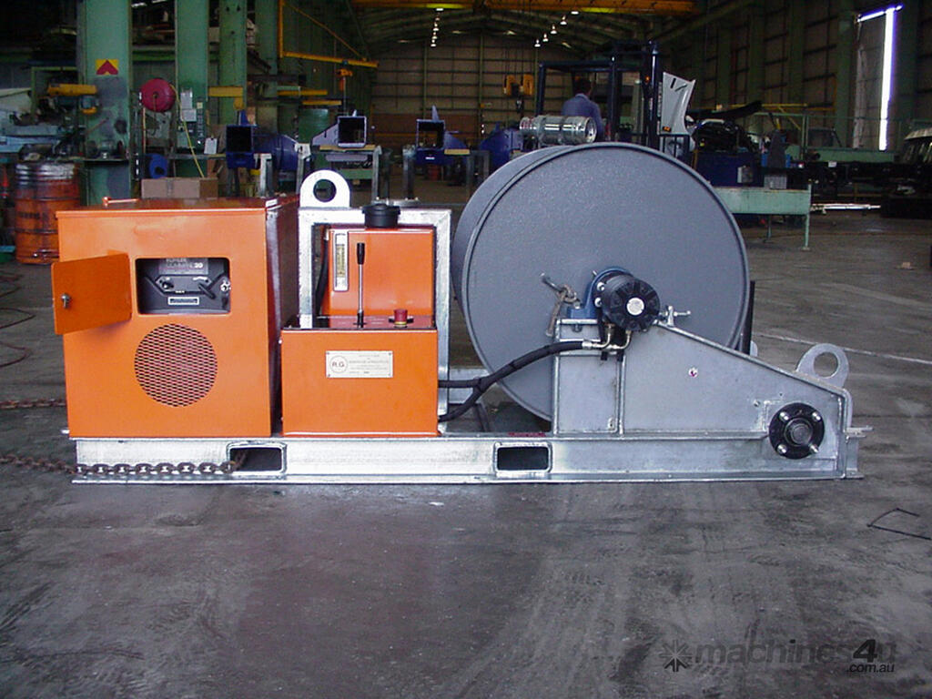 This winch is designed for general recovery work. The winches have variable line speed and are fitted with an Archimedes screw for layer winding the cable onto the drum. This type of winch has been specifically designed for pulling hauling cables through ducts and is usually used in conjunction with 35kN Bull Wheel Winch. The unit is fully self-contained and can be supplied with vinyl cover for storage purposes. The winch features hot dip galvanized frame and is provided with lockable vandal-proof enclosures. All other components are powdercoated.