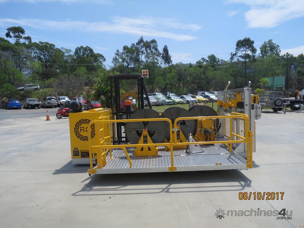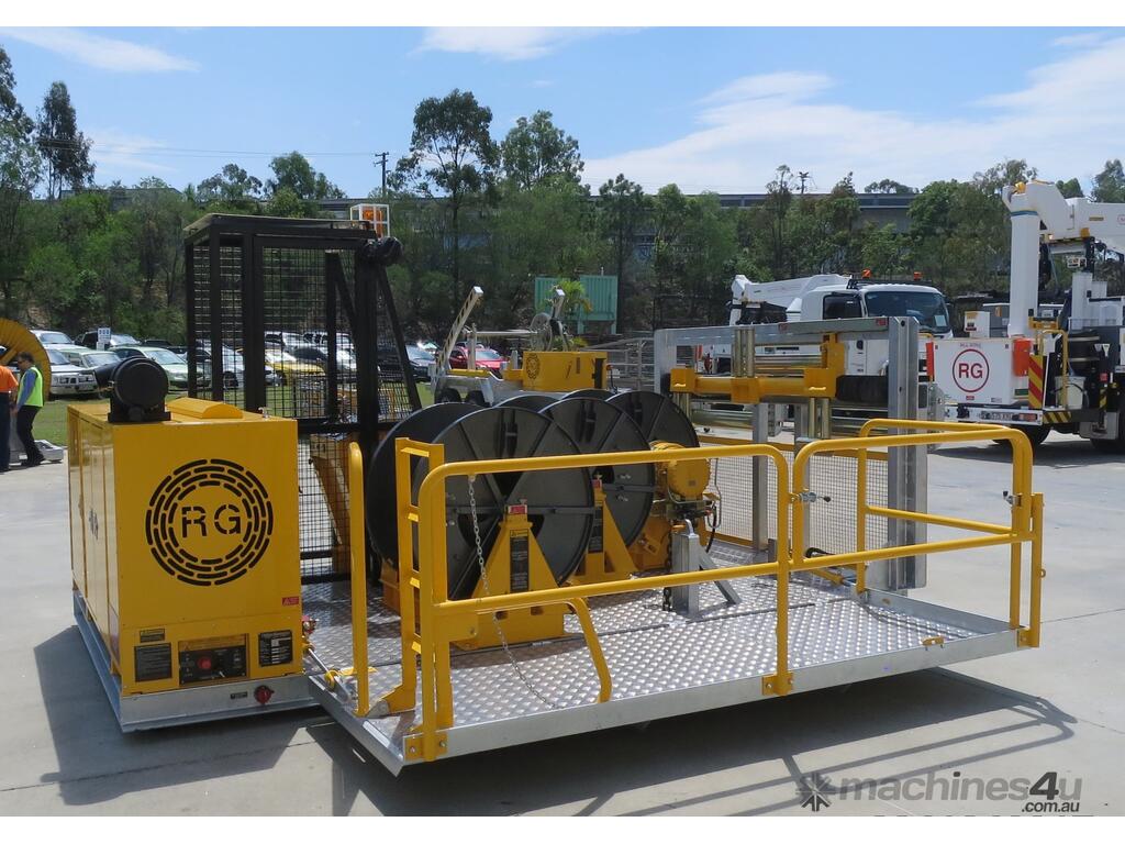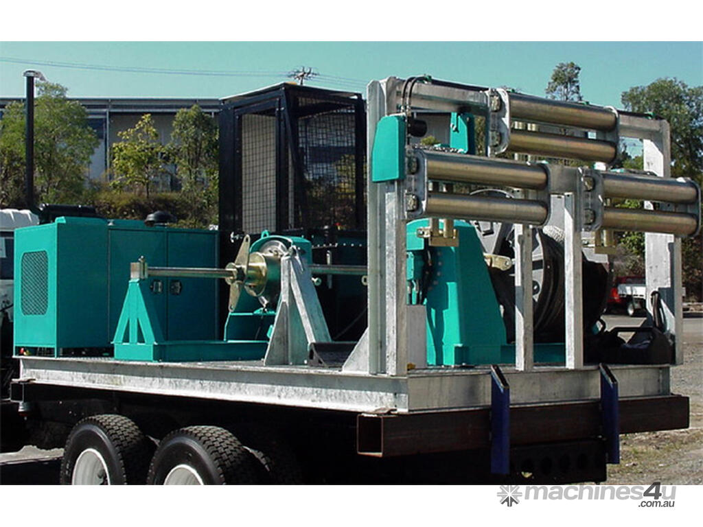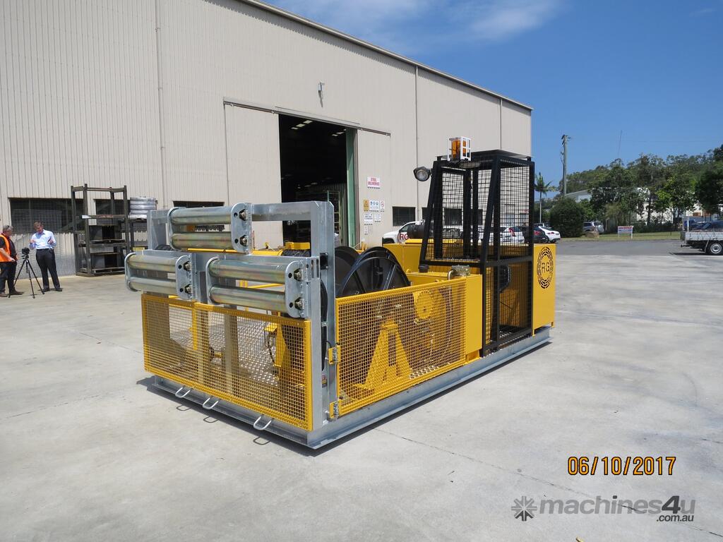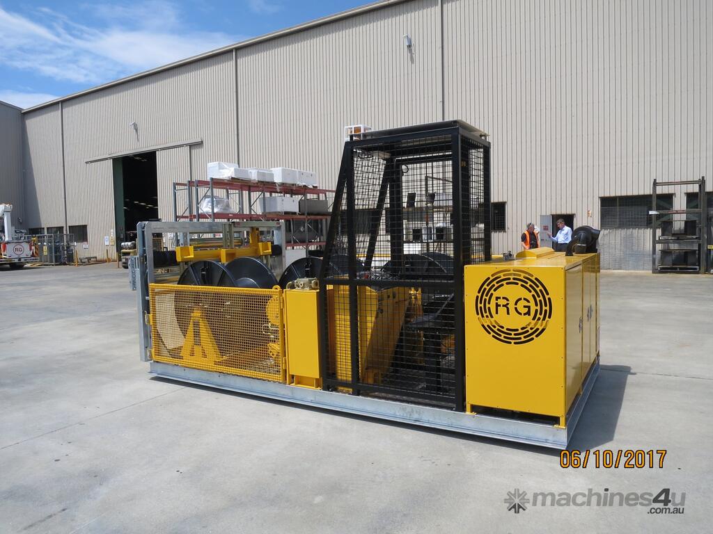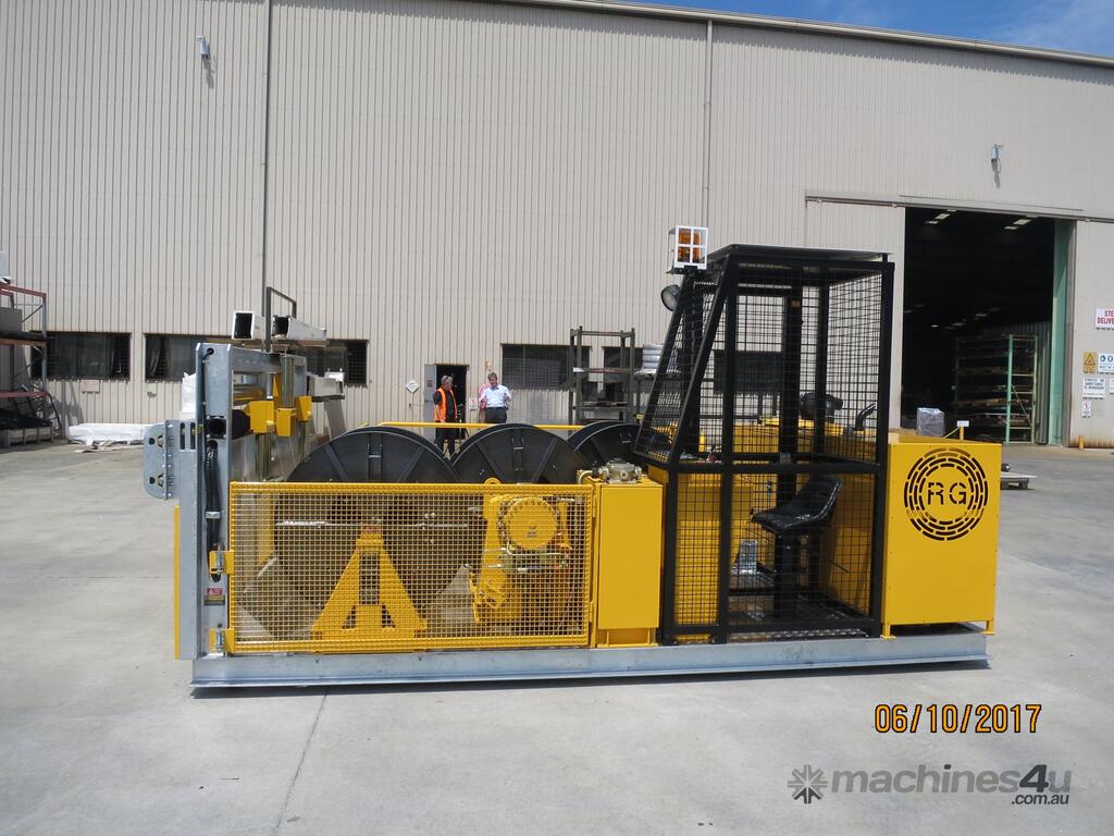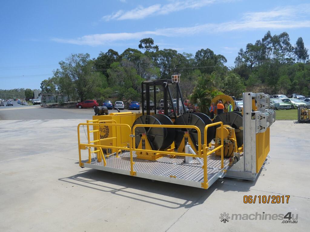 The 3-Drum recovery winch has been specially designed for pulling old overhead conductors onto a storage reel and at the same time pulling the new conductors into their place. The winch is provided with 3 storage reels and an overhead fairlead which reciprocates back and forth for layer winding onto the drums.