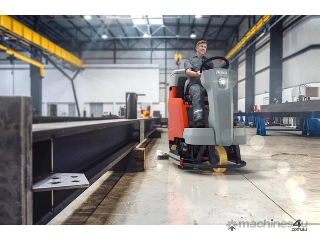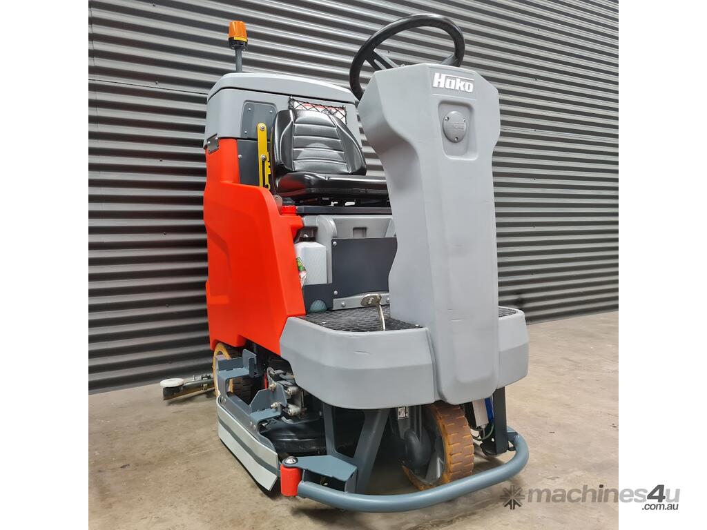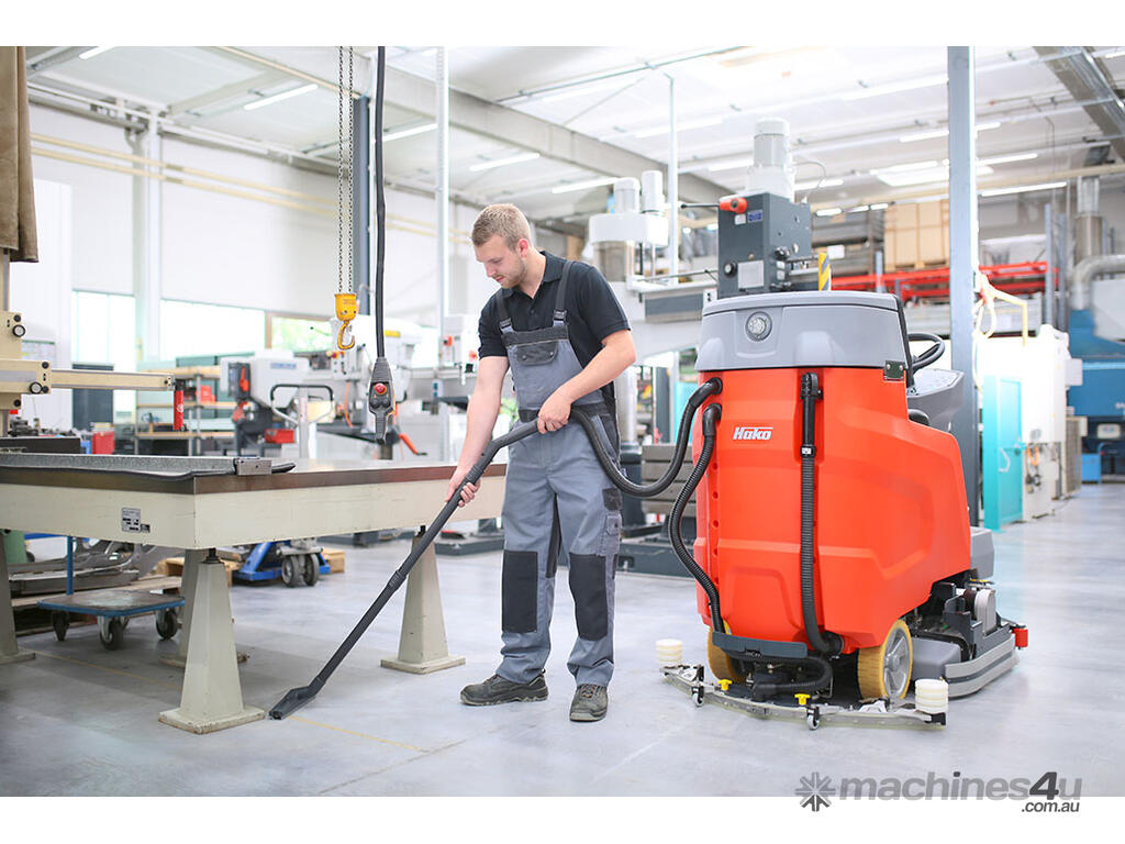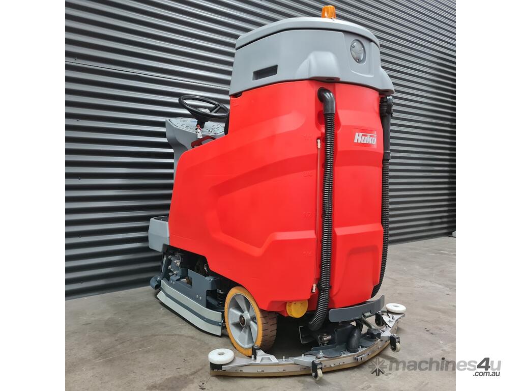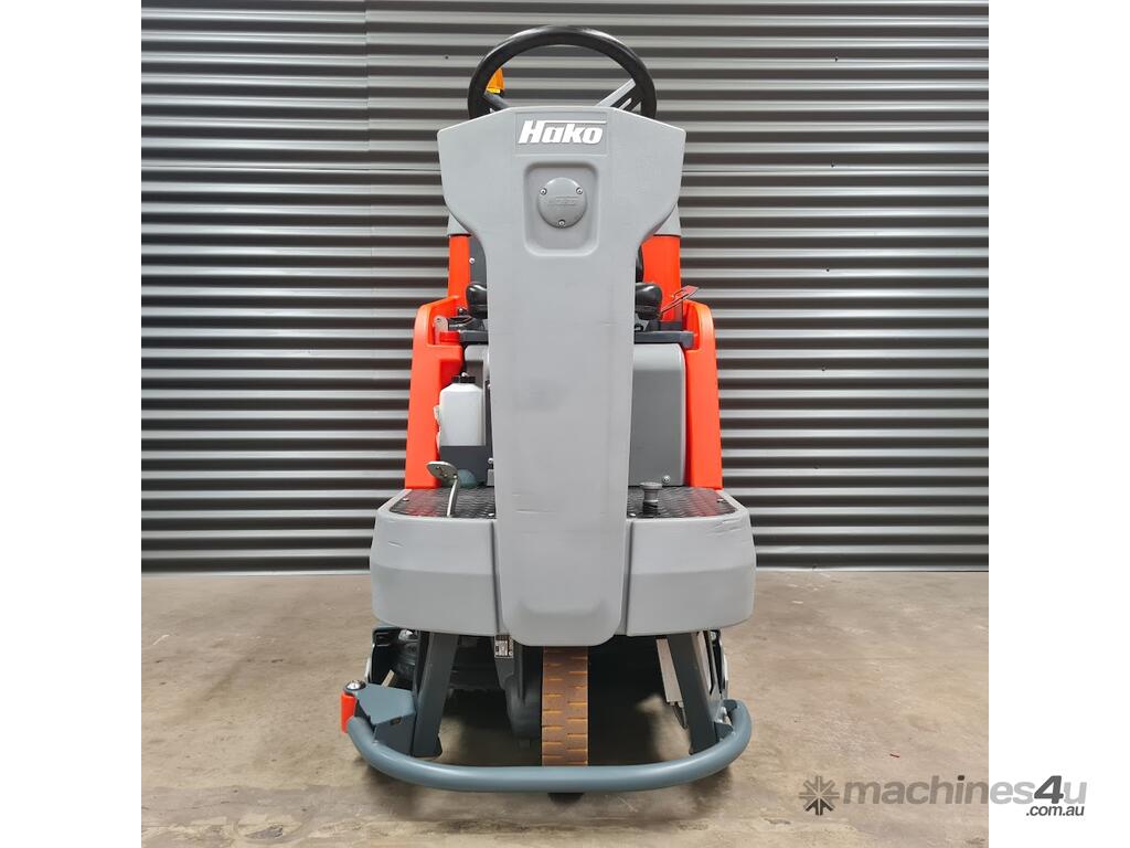 High performance model and comes standard with Patented Hako Aqua Control System. The squeegee ensures that the cleaning solution is cleaned up fully even in the case of difficult floor conditions.