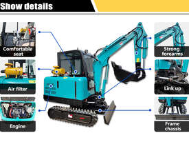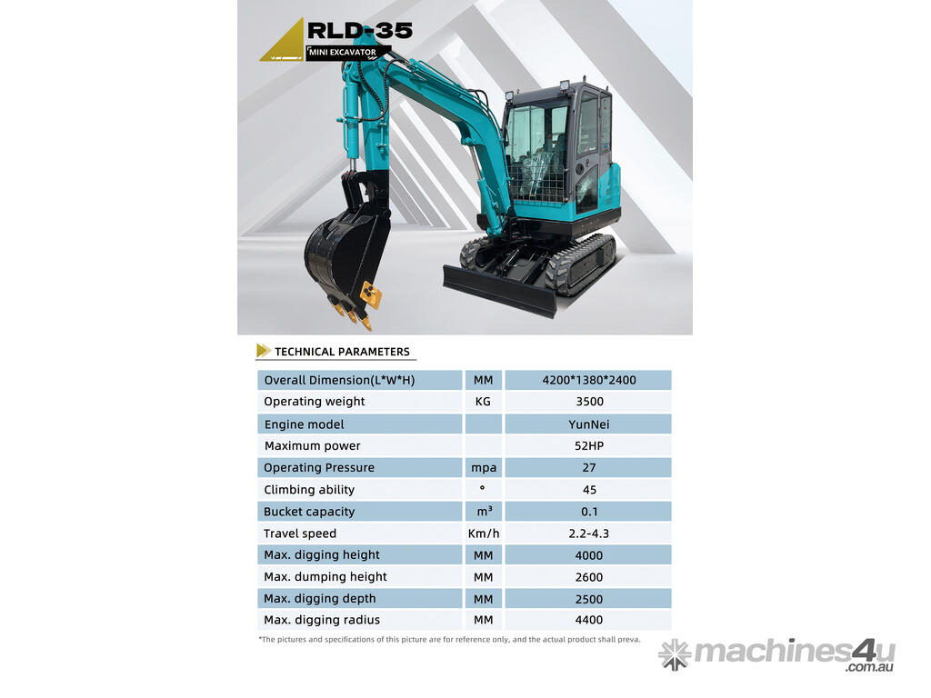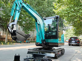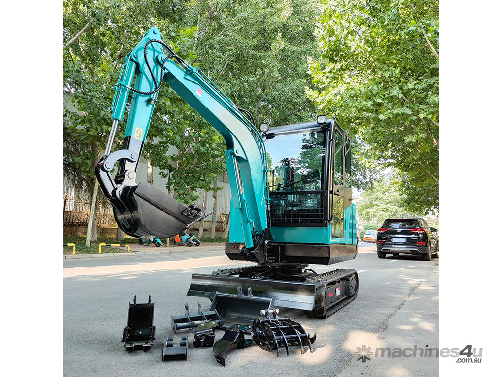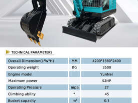 A powerful 3.3-ton excavator with a deep 2.5m digging depth and a 52HP YunNei engine, delivering commercial-grade digging force and hydraulic performance for serious construction work.