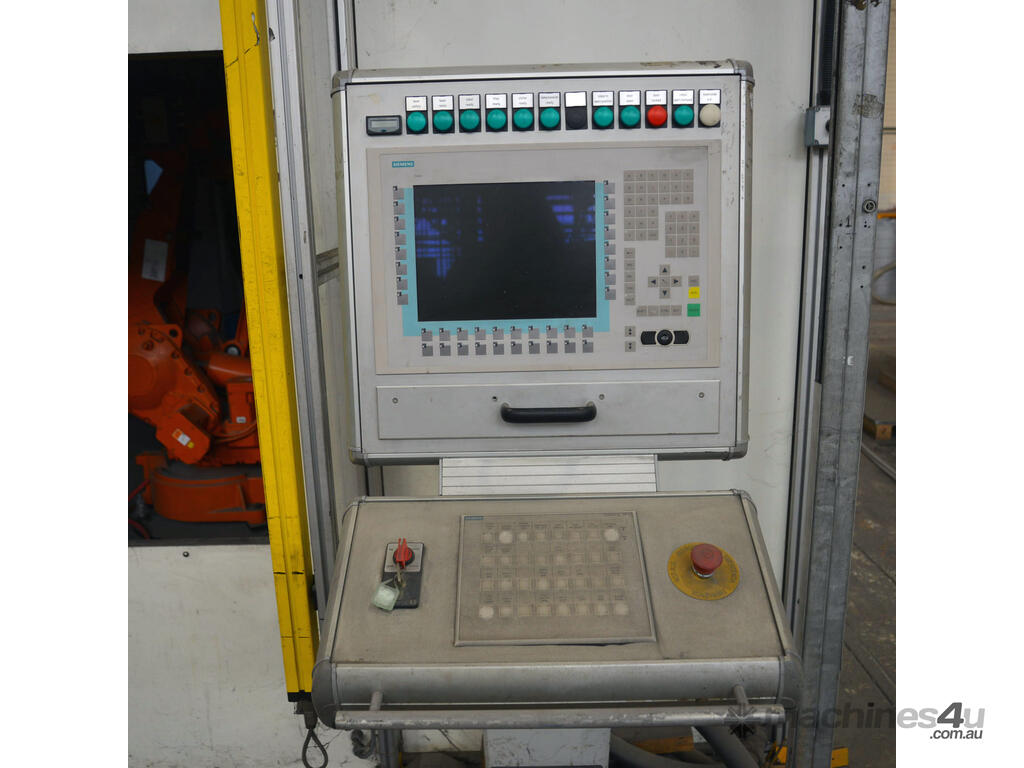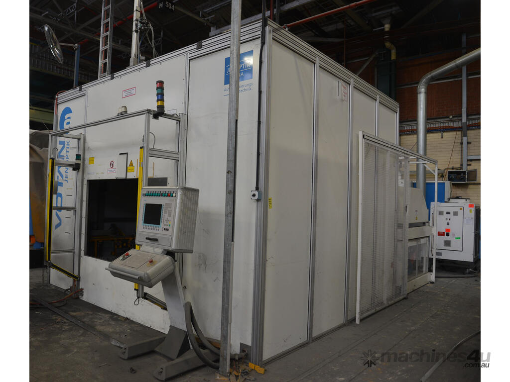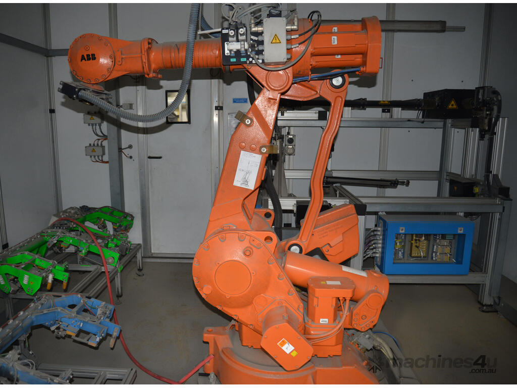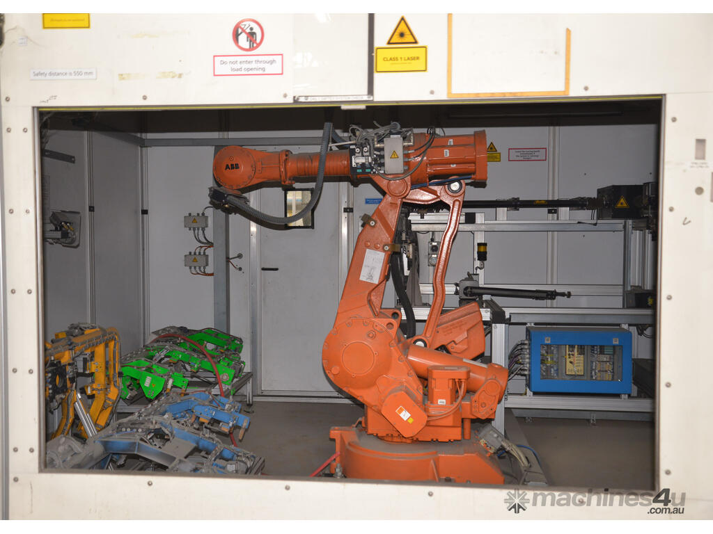 This is a complete robotic laser cutting system cell including; controller, robot controller, laser system, cooling system