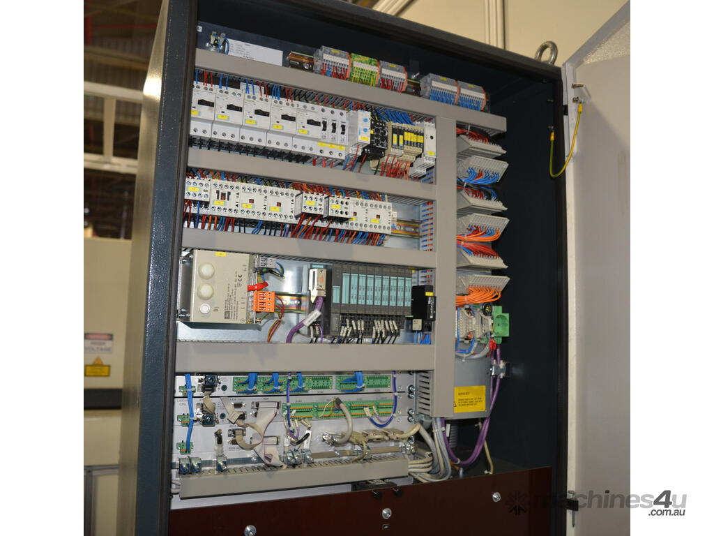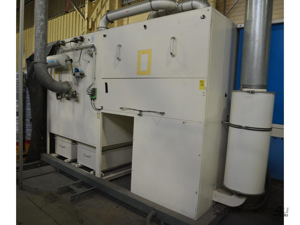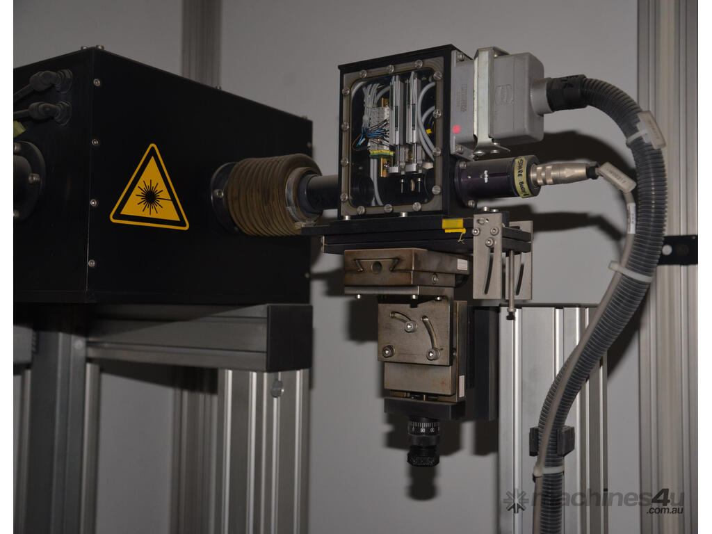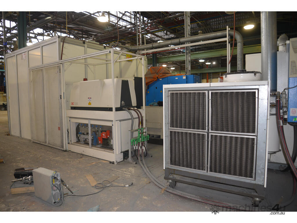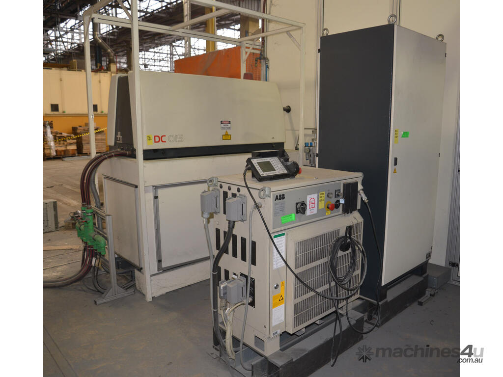 This is a complete robotic laser cutting system cell including; controller, robot controller, laser system, cooling system