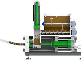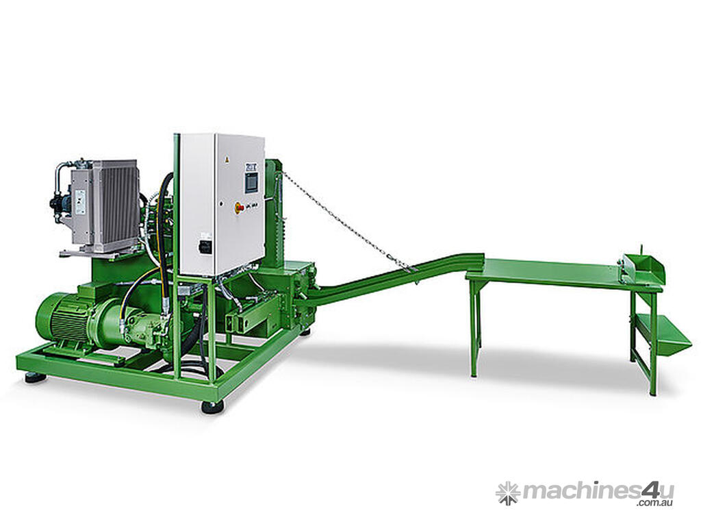 The machine has a compact industrial footprint, with approximate dimensions of 2,000 mm in length, 1,800 mm in width, and 2,000 mm in height, allowing it to be installed easily within existing processing lines or material handling systems. Its robust hydraulic design and German engineering ensure reliable performance while reducing waste volume and creating a valuable secondary fuel product from wood processing residues.