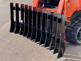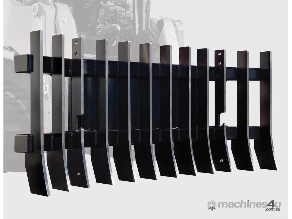 The Push Stick Rake from Himac Attachments gives you amazing vegetation control with its heavy duty build and side wings. This unique skid steer attachment makes incredibly short work of clearing land, fence lines, debris and other vegetation. The spacing between its tynes provides excellent sifting to minimise waste and maximise productivity.
