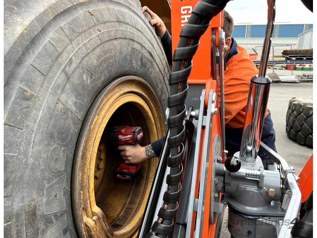 To do the job manually often requires 3-4 people, and comes with back-breaking labour and safety risks... make the right choice with the Tyre Grabber attachment for skid steers. With its extended reach gripper and 50° rotation mechanism, you only need one person to mount tyres onto large equipment safely and quickly.