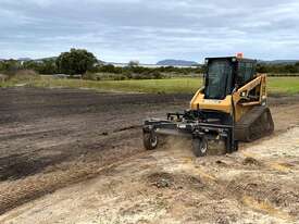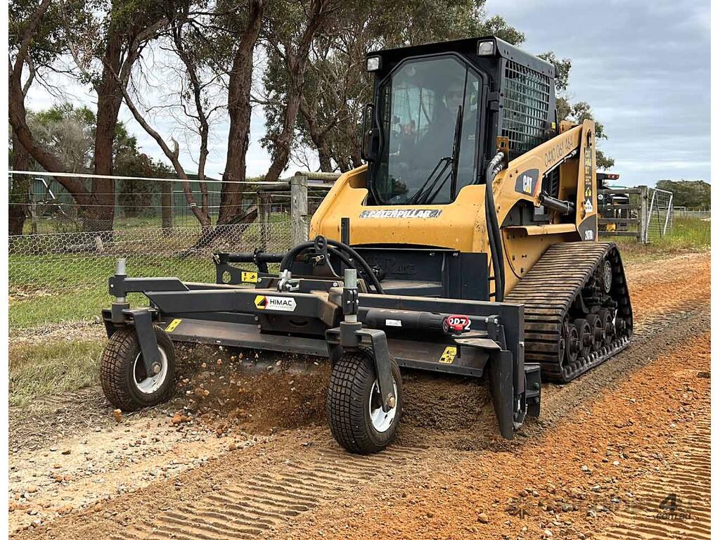 Crush, pound, level and rake all in one pass with the new Himac Rotary Power Grader for Skid Steers / Track Loaders. This powerful bi-directional grader attachment combines the strength of road-grade carbide teeth with versatile angle and tilt capabilities.