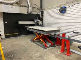 * Heavy-duty scissor lift for loading packs of boards