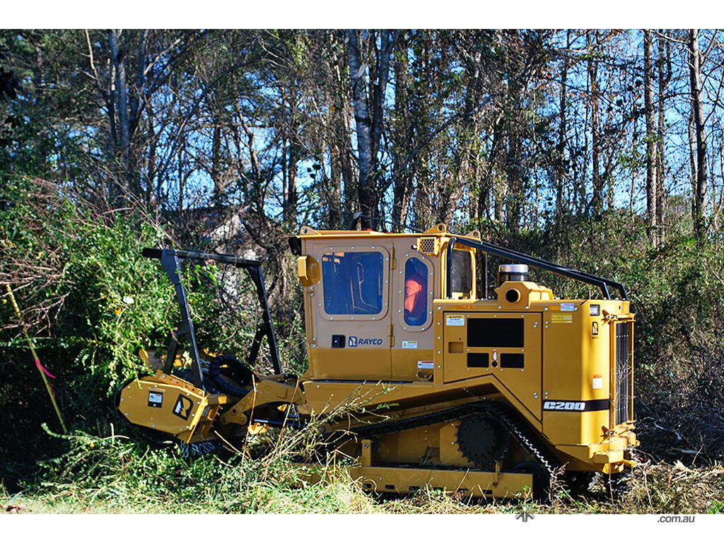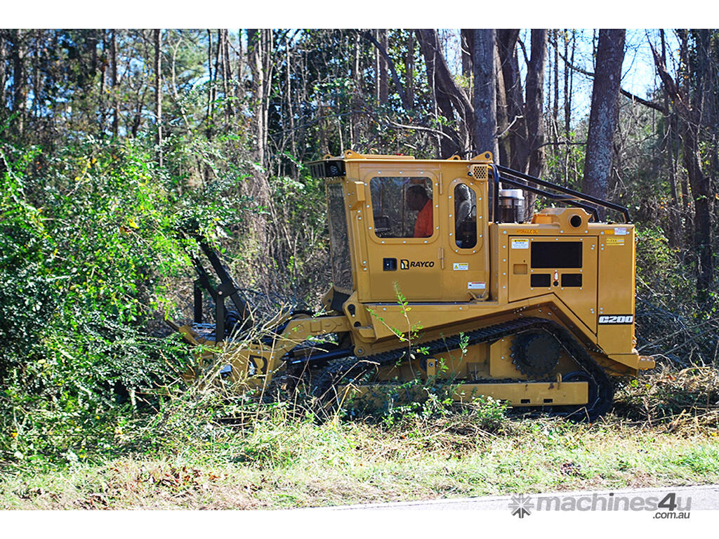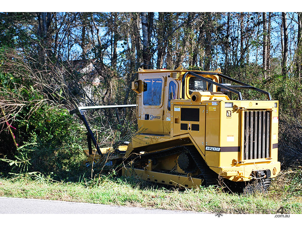 For the ultimate in compact, powerful mulchers, look no further than Rayco’s C200. The C200 is powered by a 200hp Isuzu diesel and tips the scales at only 8391 kgs. Due to its size and weight, the C200 can be transported to and from the job easily. Its narrow profile makes the C200 the ultimate for ROW clearing on narrow lines as well as for use in larger scale clearing projects. The C200 rides on a hi-track, steel undercarriage available with 2-speed travel and is available with 20” single-grouser tracks for extreme traction or triple-grouser street pads for applications that require minimal soil disturbance. The hi-track undercarriage promotes longer track life, reduces debris packing in the track chain, and cleans easily to save maintenance time.