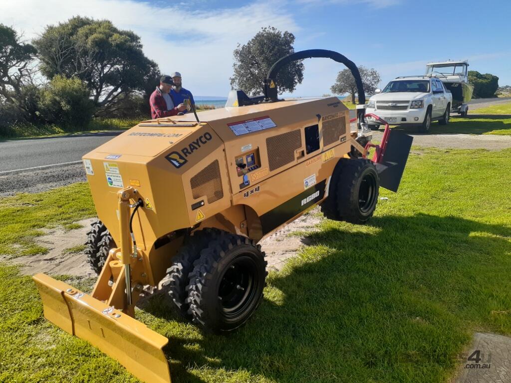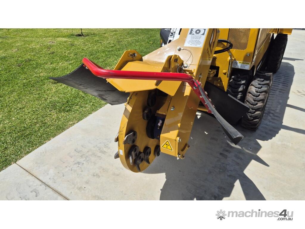 The RG80-R has a powerful 85-hp (63.4 kW) ford engine with a hydrostatic cutter wheel drive. Command Cut lets the operator vary the swing speed independently from engine speed while maintaining maximum torque and horsepower. The propel system features Hi and Low travel speeds plus an integrated “creep mode” for precise handling while cutting. The RG80 has a wireless remote control that is sealed against dust, water, and other elements. The wide hydraulic backfill blade saves time during clean up and can easily be folded in for passing through gates.