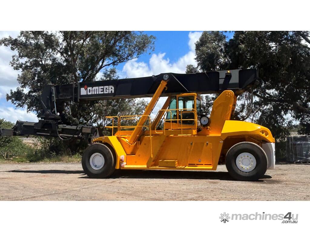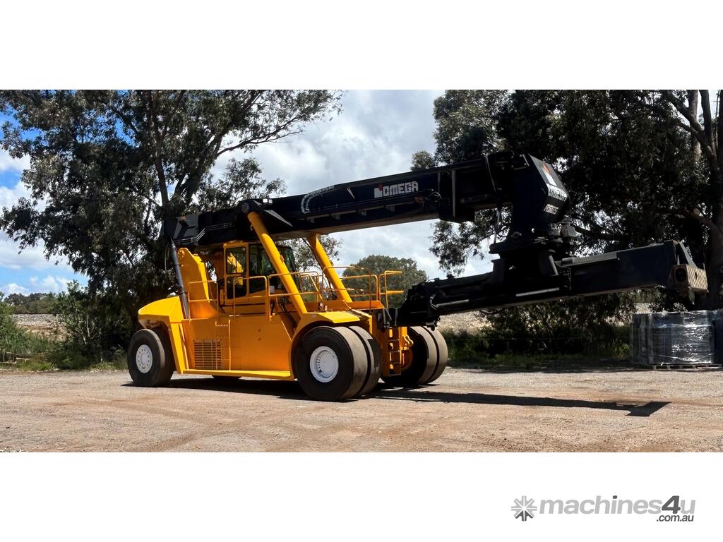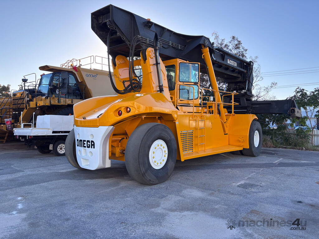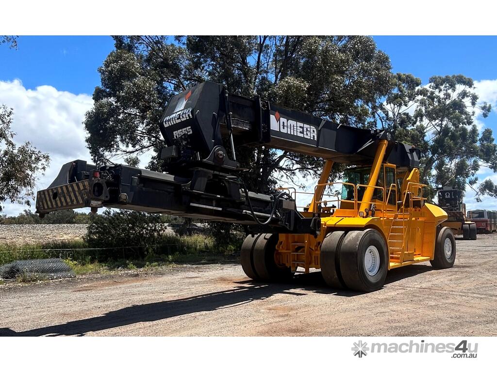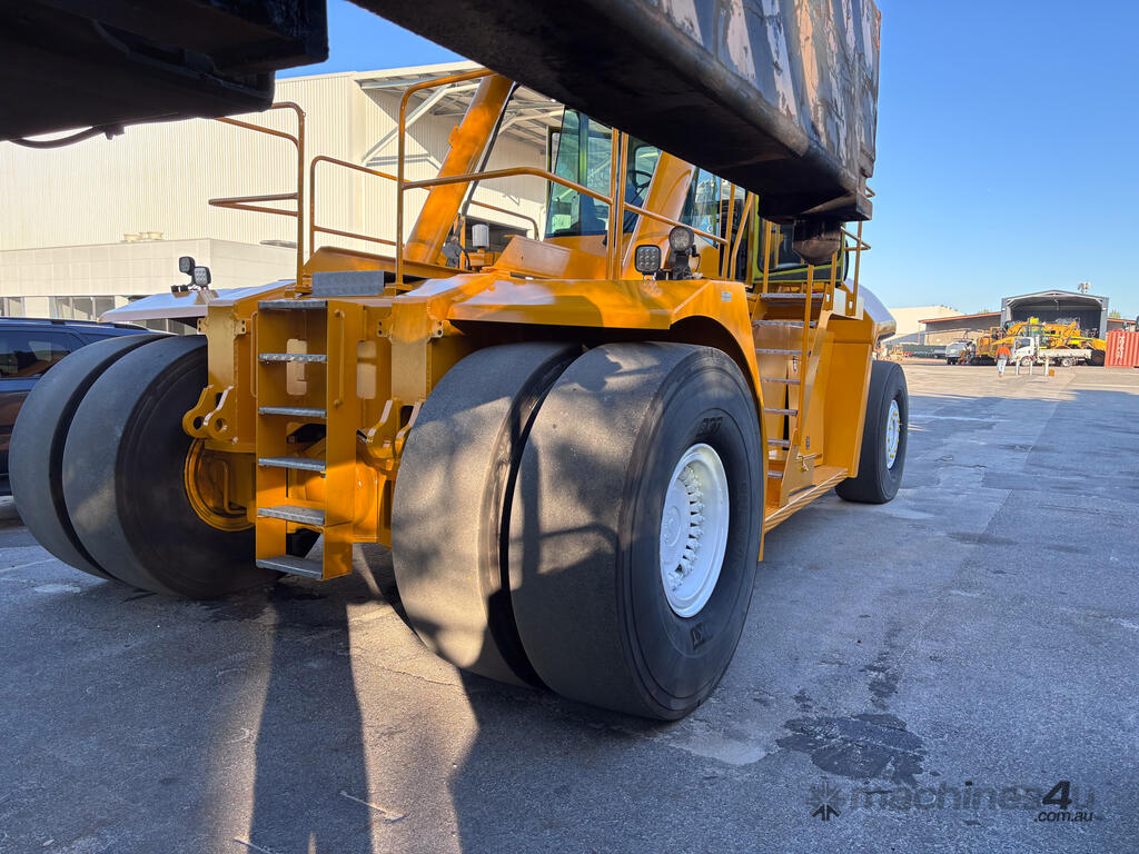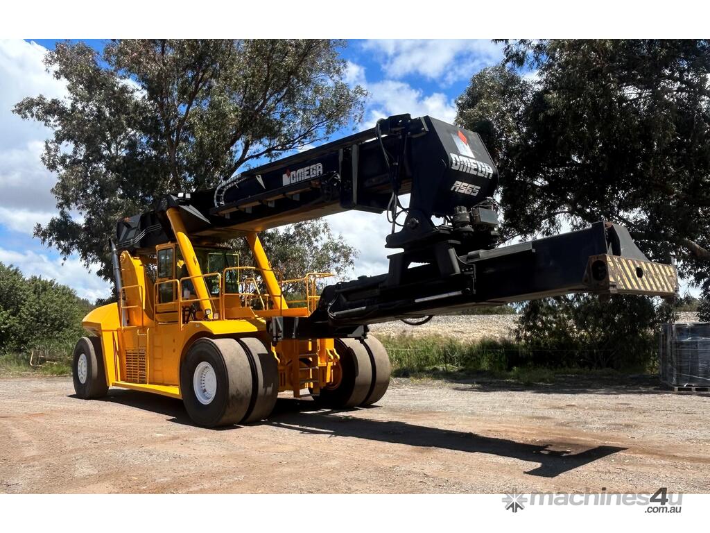 Good used Reach Stacker, ready for work. Features an ELME 20'/40' extendable toplift frame with Rotator. 5 high stacking in first row, 4 high stacking in second row and 3 high stacking in 3rd row.