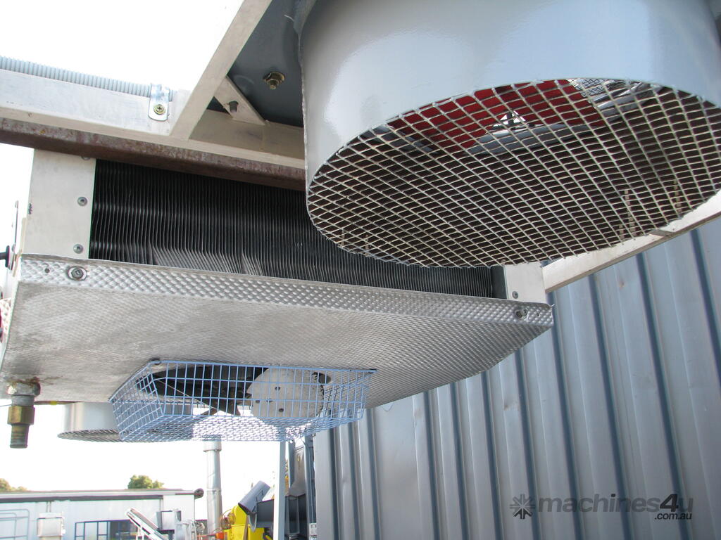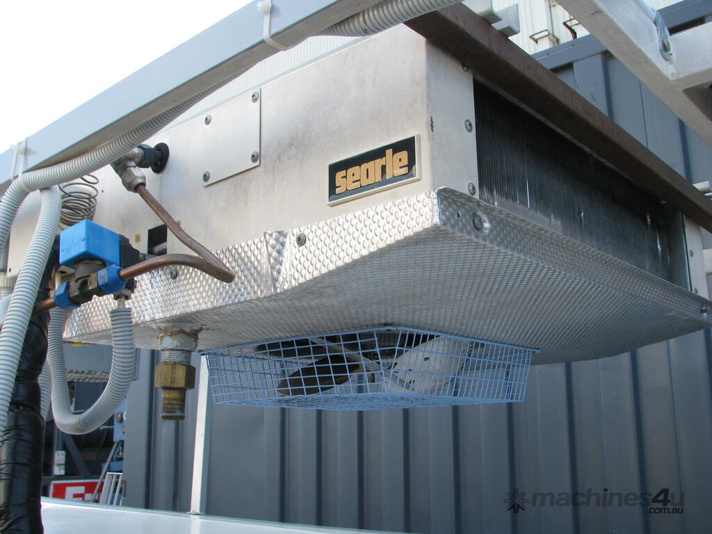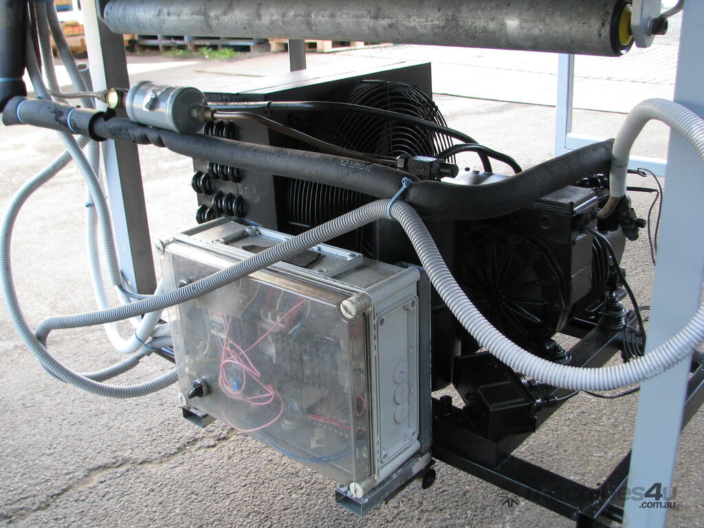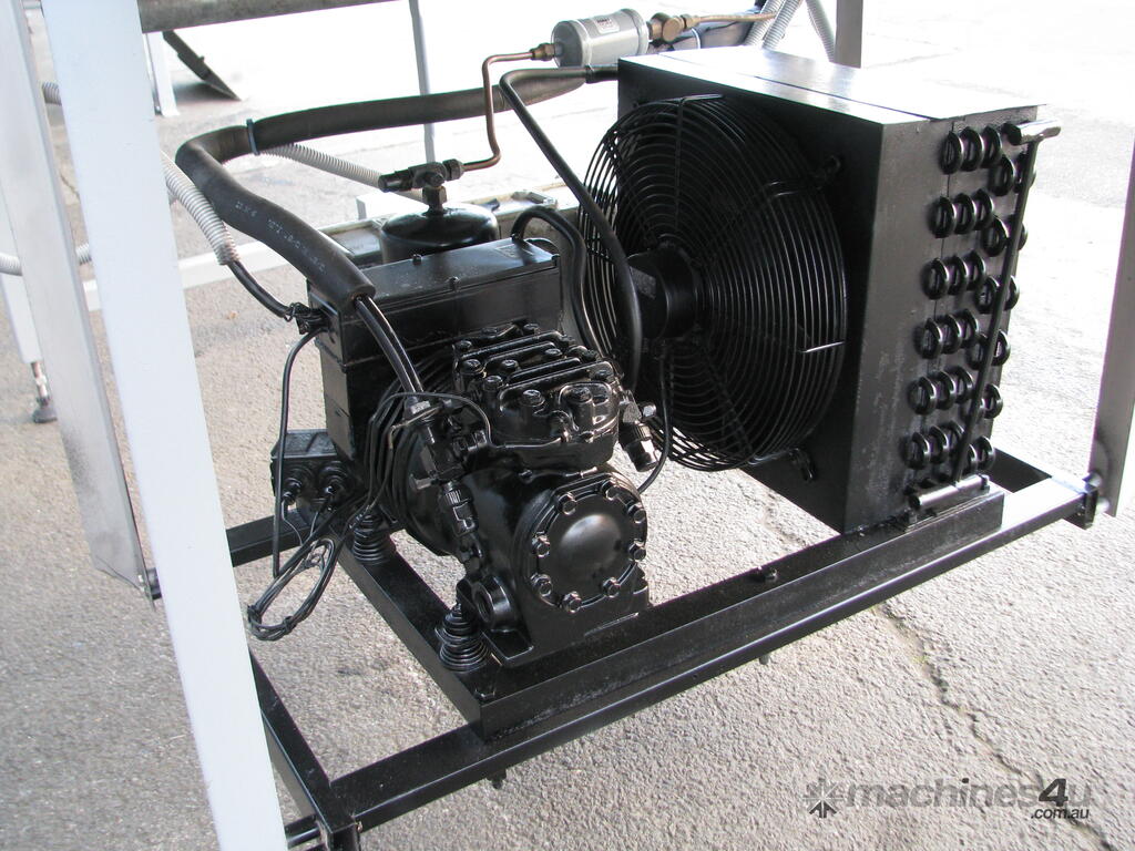 It has a built on refrigeration unit that supplies a condenser with fans.