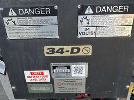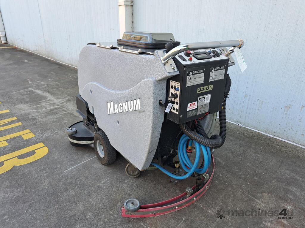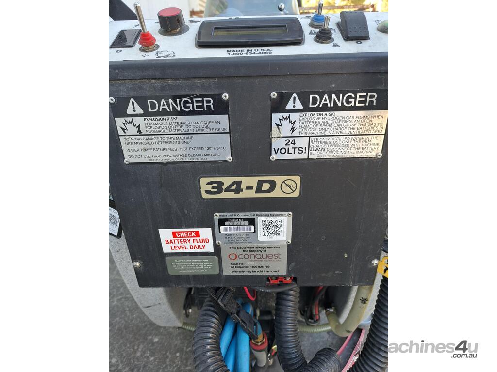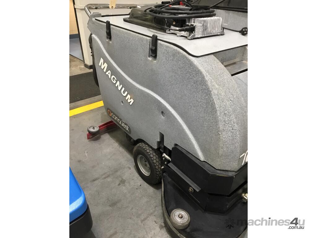 A fully refurbished Conquest Magnum 34TD Scrubber machine, expertly qualified by a trained technician, with only 533 hours of operation. It offers reliable and efficient cleaning for large floor areas.