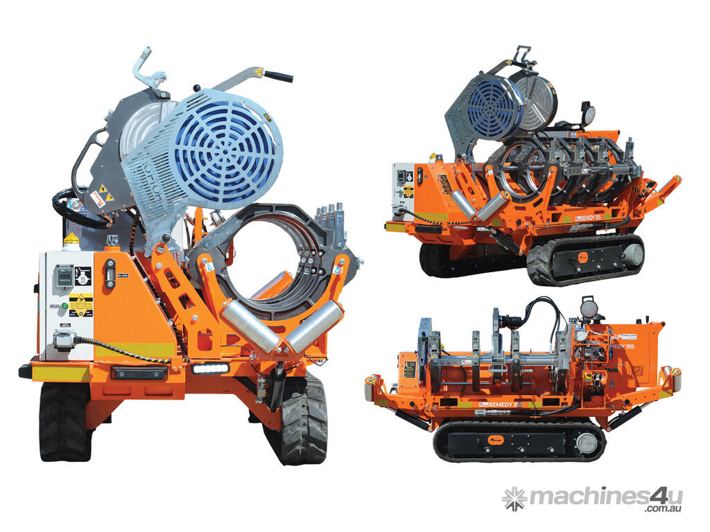 REMEDY 355 is an independent, high-productivity welding machine driven by tracks and powered by a Diesel on-board generator. Designed for butt welding HDPE and PP pipes from Ø 125 to 355 mm (from 4” to 14” IPS; from 4” to 12” DIPS). Suitable for ISO 21307 High Pressure and ASTM F2620 fusion standards.