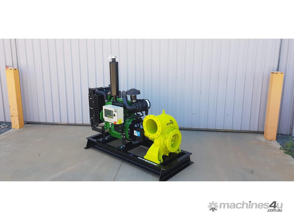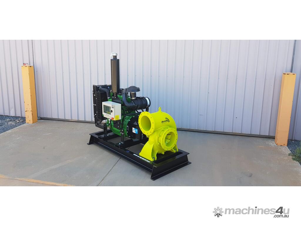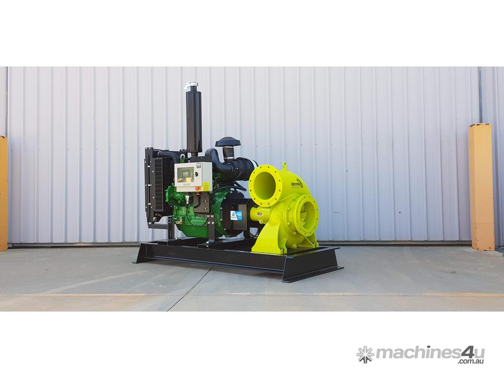 The Remko RM-250e is a 10” high-flow diesel irrigation pumpset engineered for large farm water transfer, channel supply, storage dam filling, and flood irrigation duties.