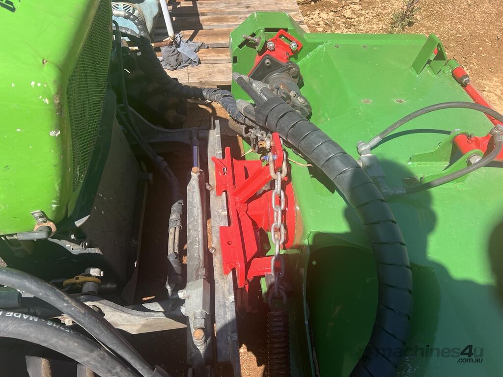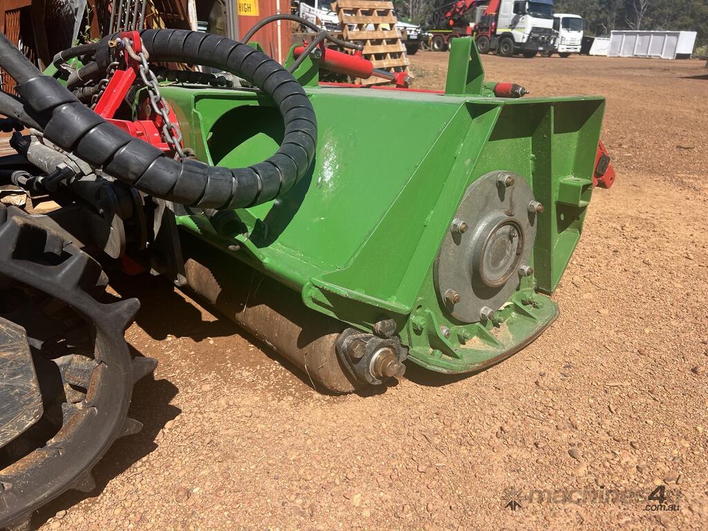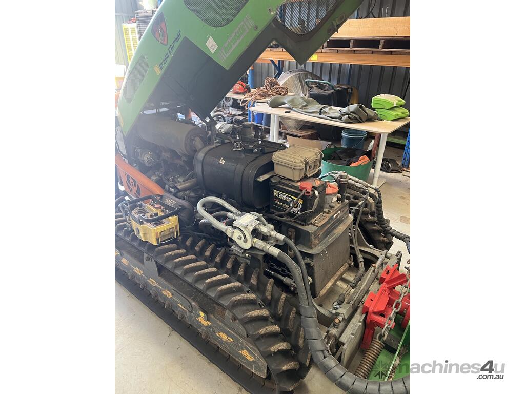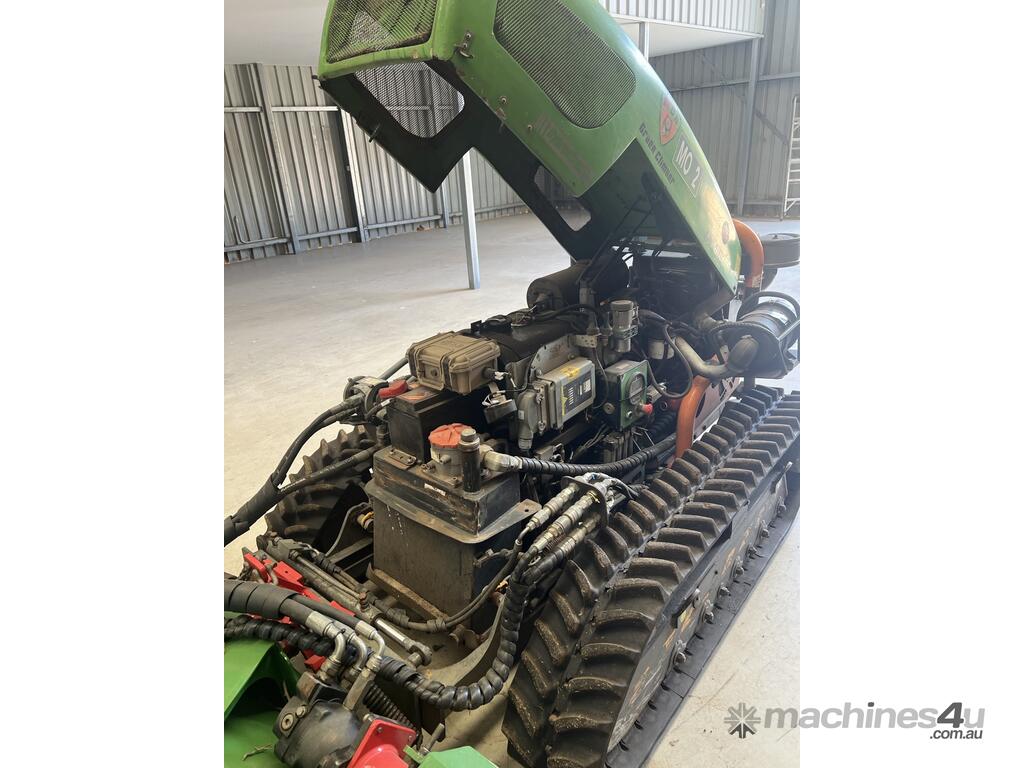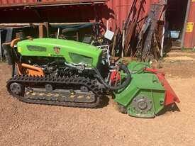 Remote-controlled, tracked slope mower with flail-style mower head attached. Full service history, 1600hrs, 1300mm width of cut can mow grass and bushes, the mower head has a hydraulic side shift of 1000mm from side to side. Track base expands from 1330 to 1730 and can work on bankings up to 60%. The mower is powered by a 50hp Yanmar diesel and is specially designed to work on steep slopes. The whole machine is in great condition, tracks and sprockets are almost new, the mower head has been refurbished with a new rotor and bearings and a new and upgraded rear roller. Can arrange transport Australia wide.