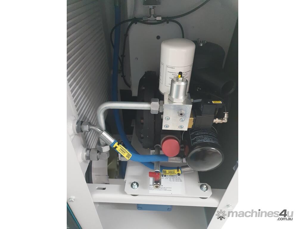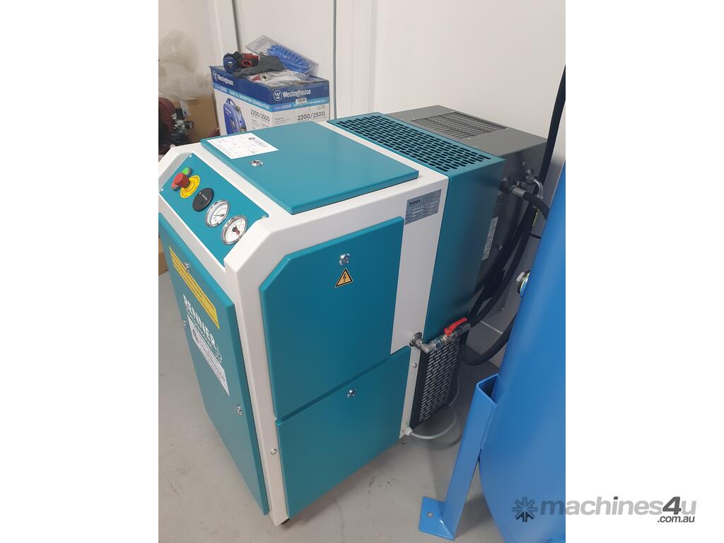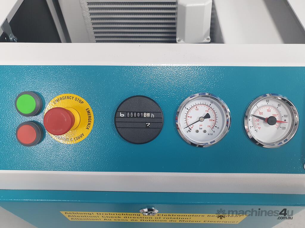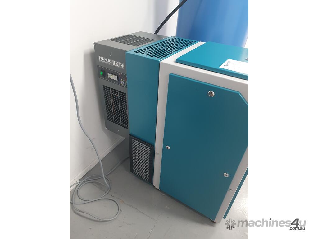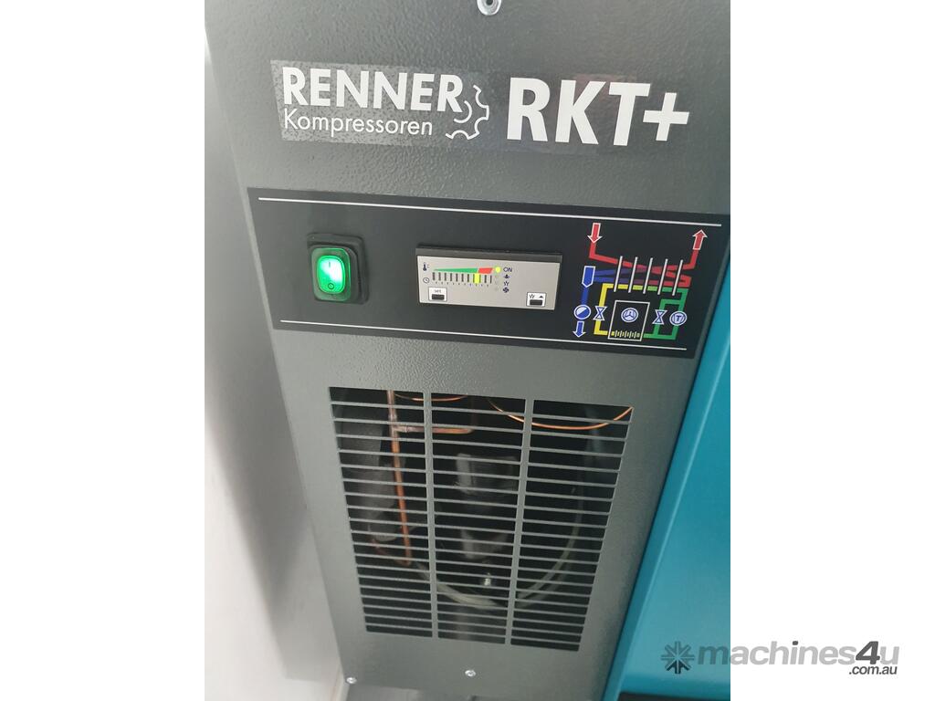 This New Renner RSK-PRO (German built) 15-10 (5.5KW) rotary screw air compressor with air dryer that supplies 82 CFM 10 BAR pressure.