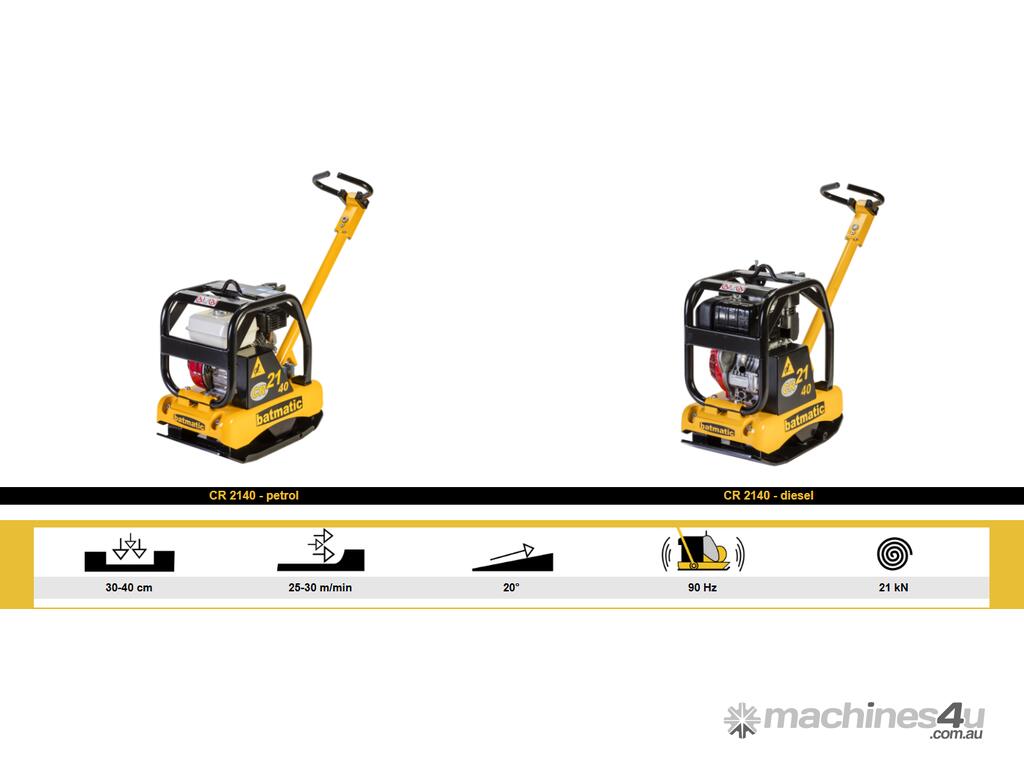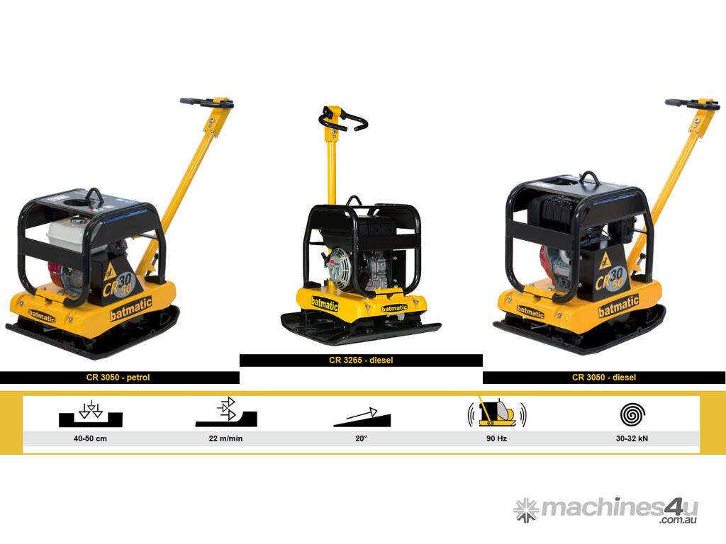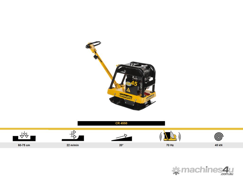 With a wide range of reversible plate compactors from 112kg to 680kgs, Batmatic has something to suit every need! The CR4550 covers 237kg to 253 kgs.