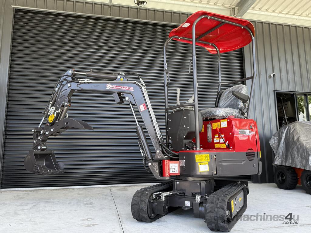 The listing is 1 x Rhinoceros XN10SE Mini excavator with 10-piece Deluxe Attachment Package - $12,490 incl. GST