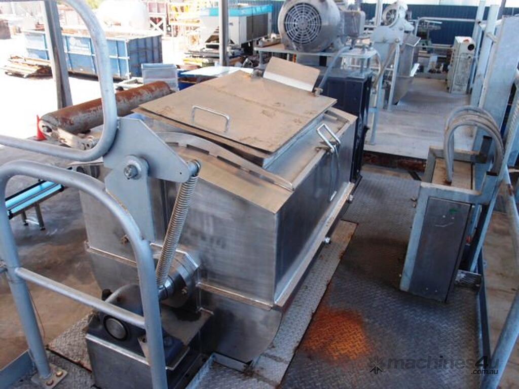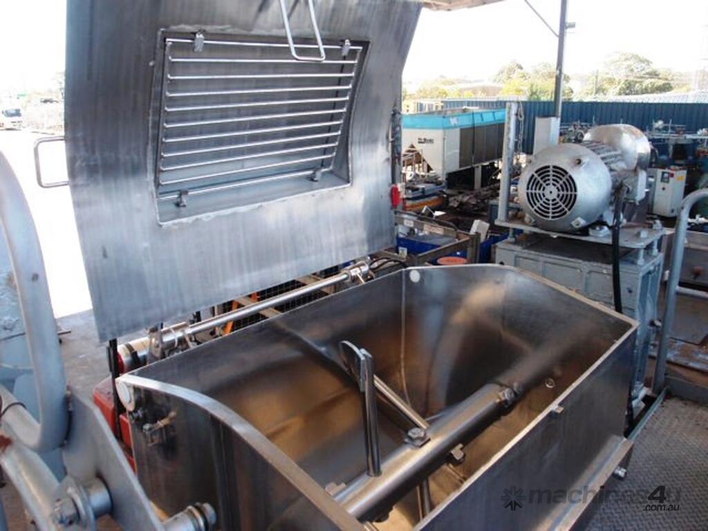 Mixer is driven by an approx 40HP, 415V electric motor, belt driving reduction gearbox.