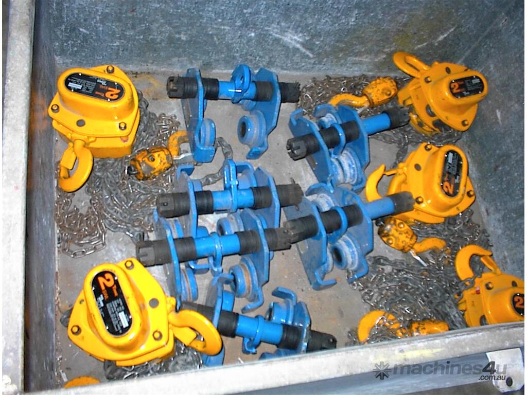Rigmate push girder trolleys, adjustable for beam width 64mm-203mm, 1 tonne rated capacity, as new condition, 6 units available , price each $55 inc gst.