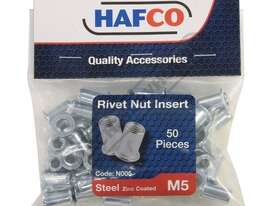 HAFCO Rivet Nut Inserts - M5 x 0.8mm Steel - Zinc Plated Qty 50 In Pack