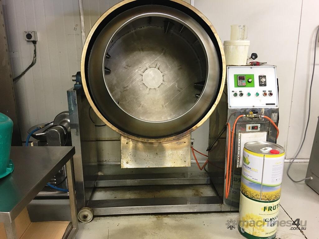 Rotating and Tilting Mixer Roaster 800 mm diameter x 600 mm deep. Mix around 100 kg depending on product. Suitable for Nut, Seed and Coffee Roasting or cooking product.