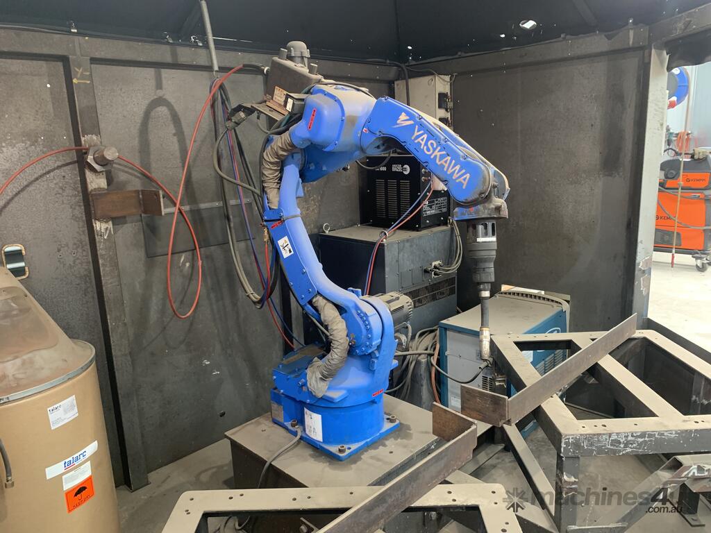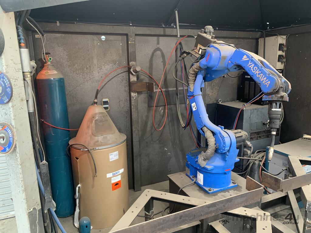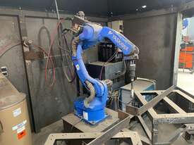 No longer required our Yaskawa 6 AXIS robotic arm with Binzel water cooled torch and OTC Webee P400 Welder. This unit has been problem free and am sure it will continue to impress the next owner. Nick named Kevin, he doesn't ask for a lot and welds in all conditions without complaint. We can provide training upon sale, comes with all accessories and full Drum of ER 80 1.2 wire. Everything pictured included