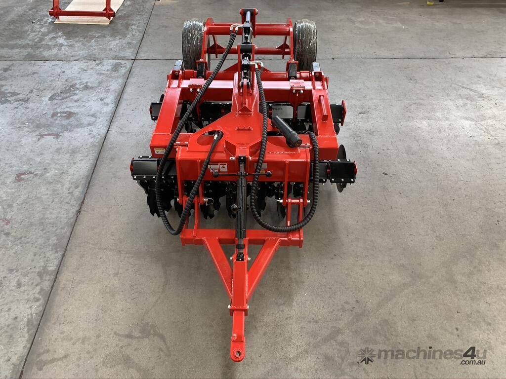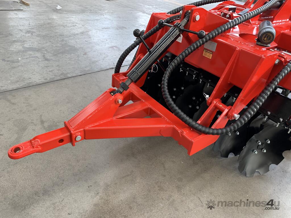 Features hydraulic depth control for easy adjustment and is heavy enough to penetrate hard soils and provide a uniform seed bed and is versatile enough for both primary and secondary cultivation purposes.