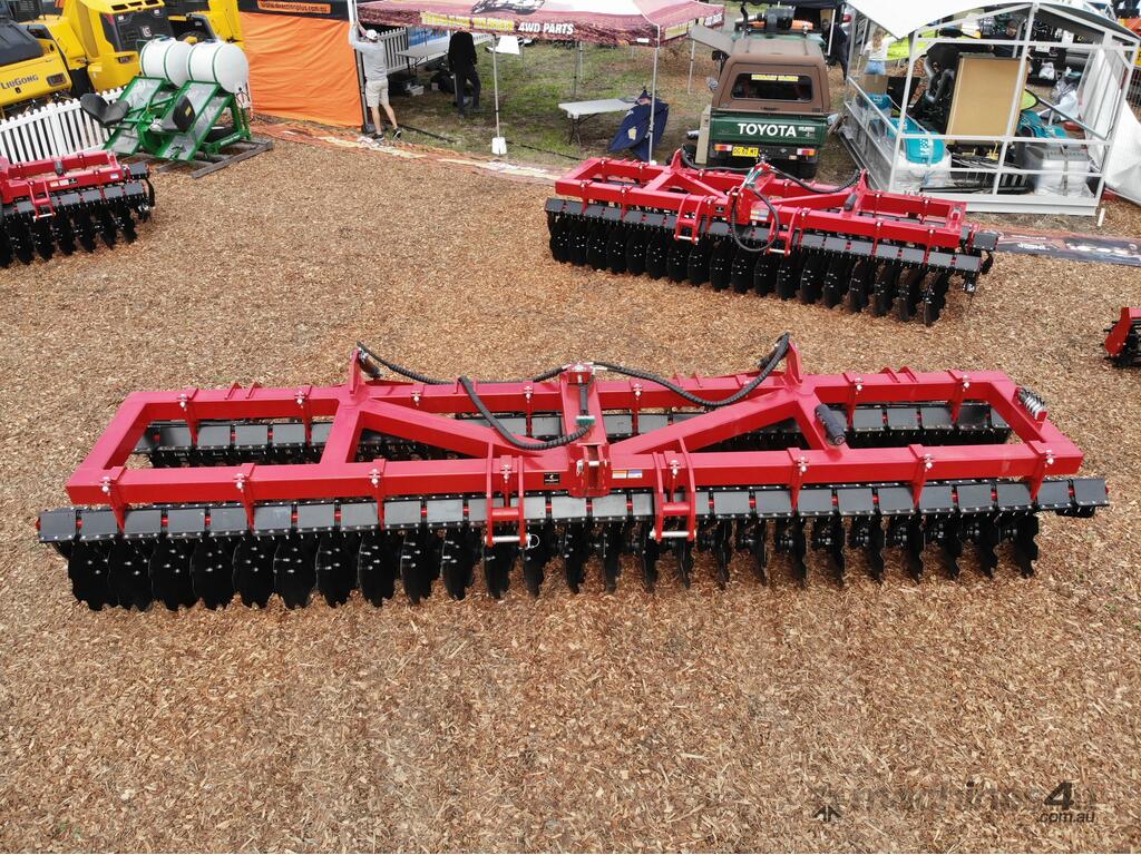 Features hydraulic depth control for easy adjustment and is heavy enough to penetrate hard soils and provide a uniform seed bed and is versatile enough for both primary and secondary cultivation purposes.