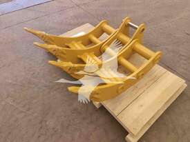 Excavator Rakes have a curved profile for efficient digging and screening of debris such as rocks and tree roots, making it possible to remove roots during site preparation. And it can cooperate with Thumbs to expand its processing functions. The rake with pointed tips, which can provide maximum penetration and stays sharp for extended wear life.