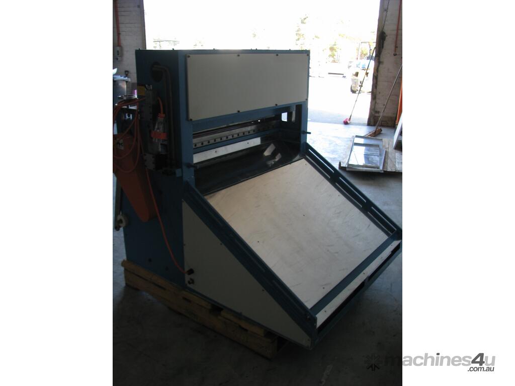 Automatic cutting of roll materials to final size. The top knife of the cutter moves against the stationary bottom knife in a shearing action. The machine reliably cuts a variety of materials up to a thickness of approximately 1-3 mm, e.g. furniture foils, plastic films, papers, laminates, PVC films, aluminium and copper foils, etc.