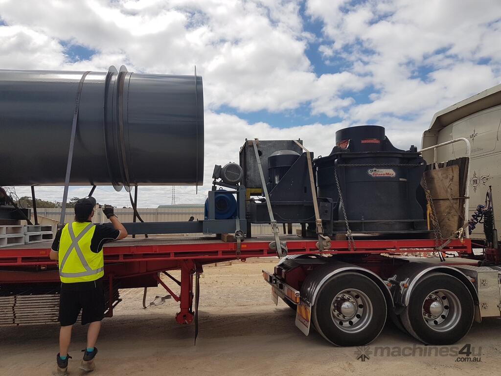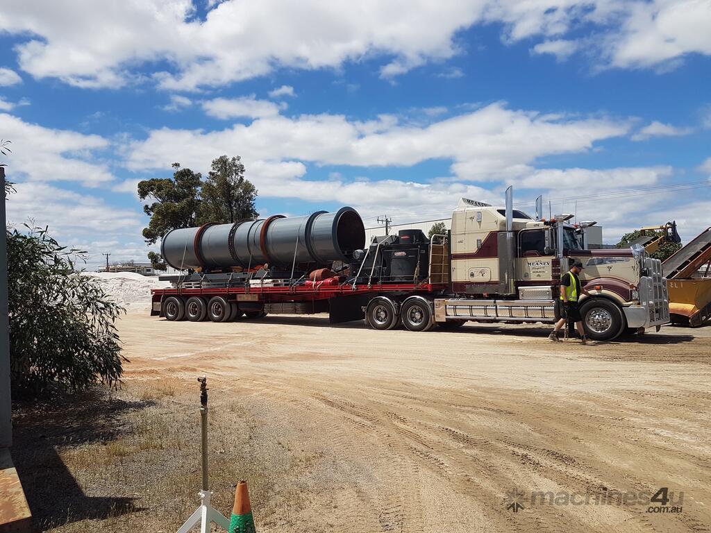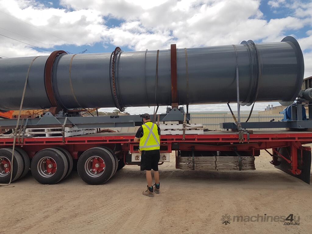 The transport measurements are as below. We will have to remove the drive frame for transport as it makes it 2600mm wide. It will fit under the discharge end of the dryer, but the motor and gearbox will add an extra 800mm to the over length.
