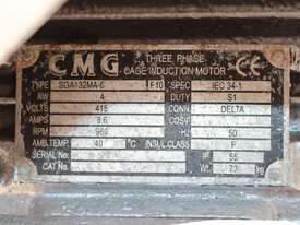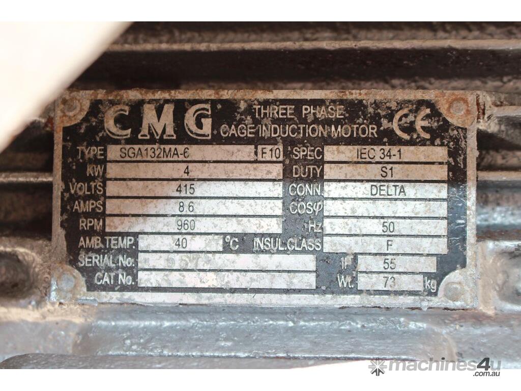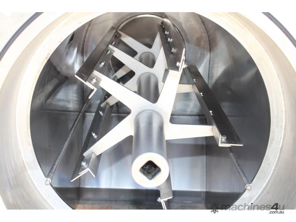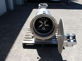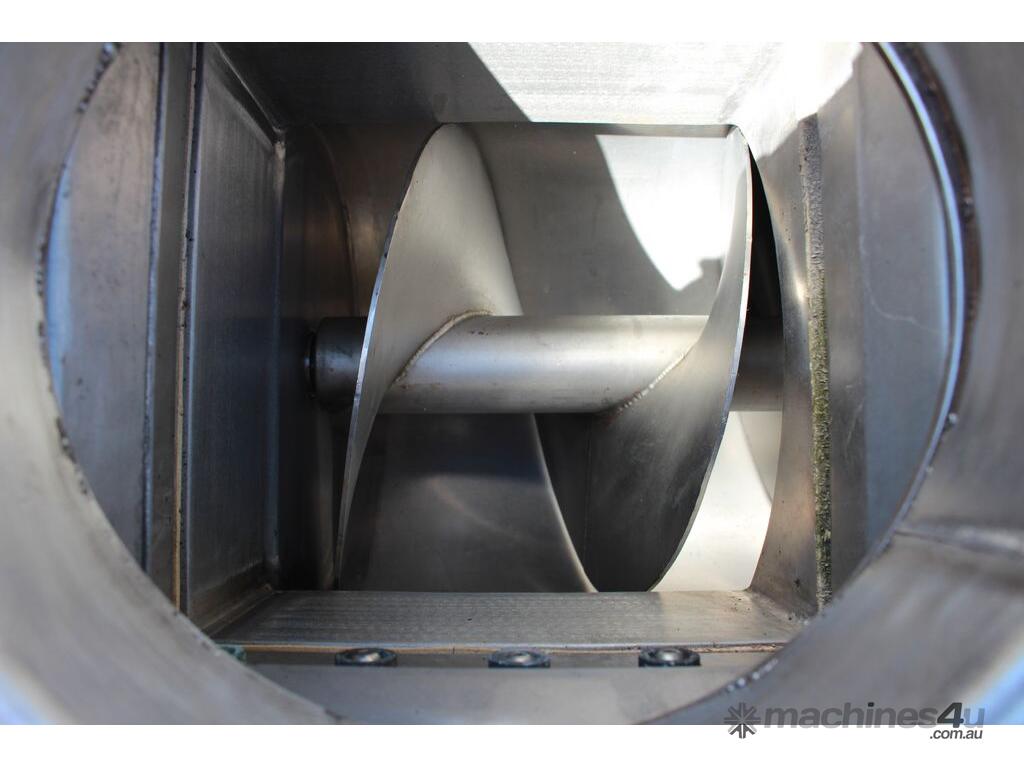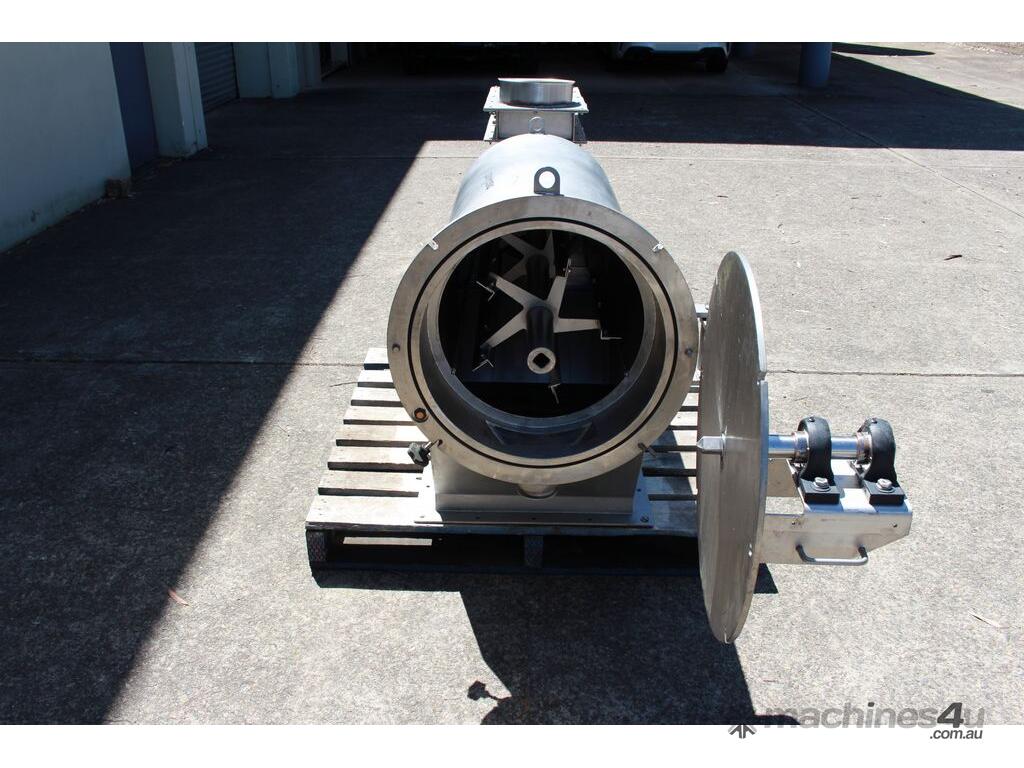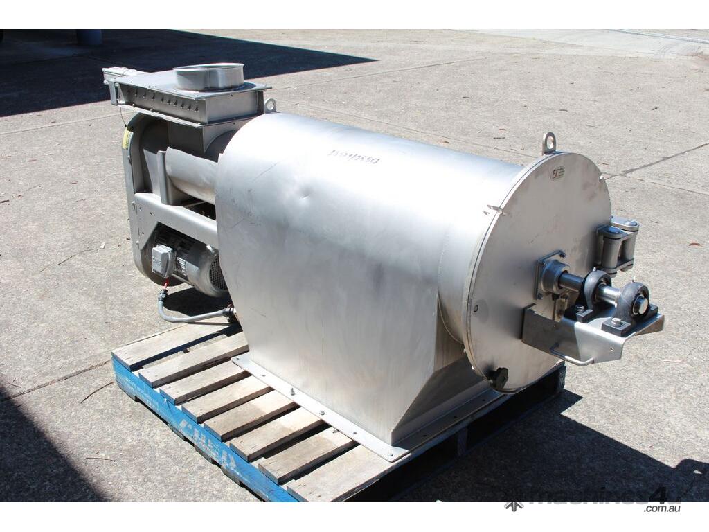 Rotary Sieve, "Fresco", 240mm dia inlet with pneumatic shutoff valve, feeding to a auger infeed and then into a 450mm dia x 1000mm long screen, all stainless steel wetted parts, hopper discharge dimensions: 700mm x 510mm wide, 70mm dia outlet, driven by 3 phase 4kw, requires screen