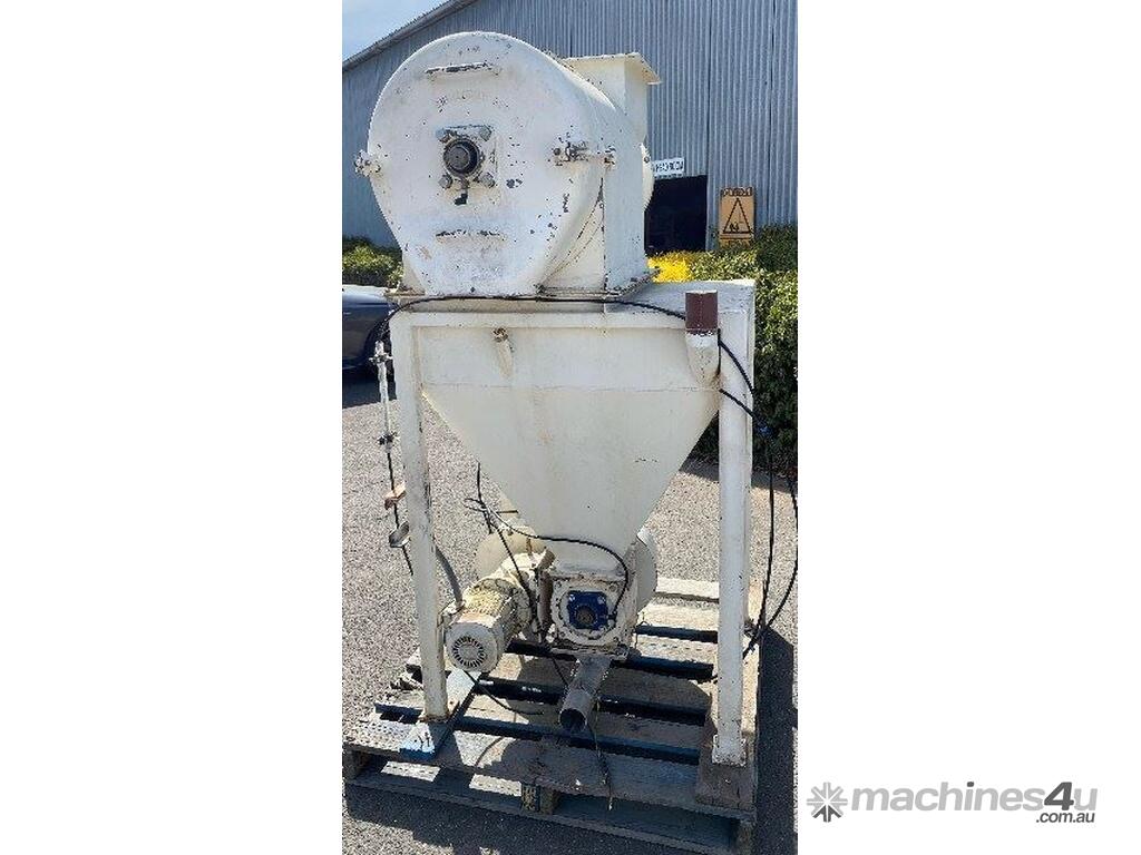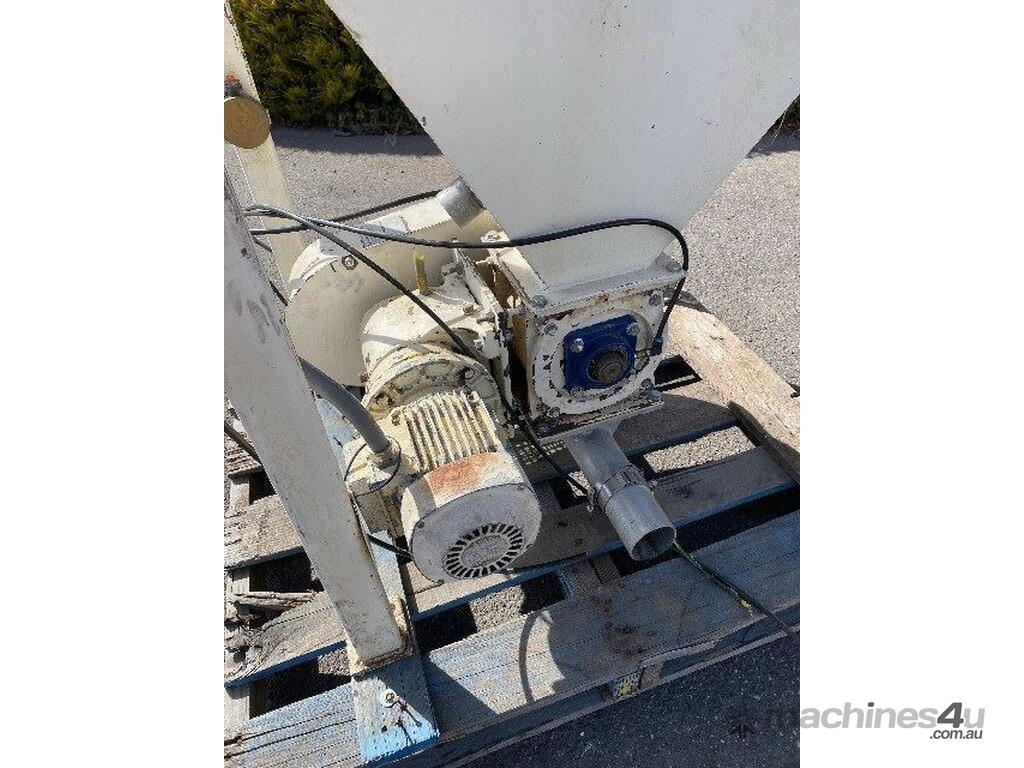 Discharge hopper fitted with Sprout Bauer 150mm Rotary valve and Geared motor.